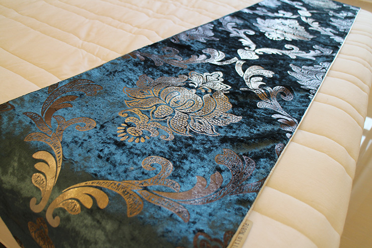 藍色40*240cm精品歐式床旗 桌旗 臺布 床蓋 樣間擺設 床尾巾訂制 喬遷新居禮品