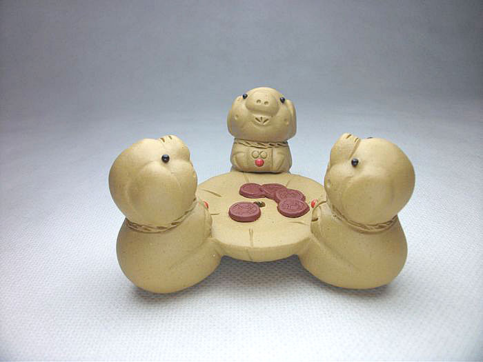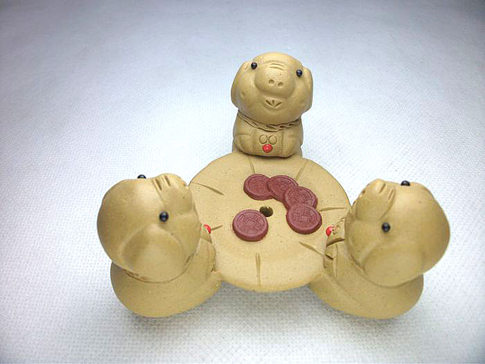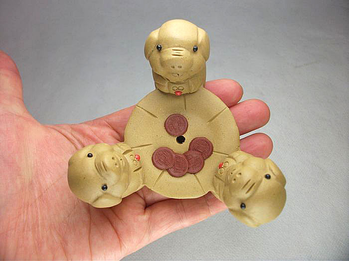 濾茶器過濾網茶道配件特價 宜興紫砂雕塑茶寵擺件 三只小豬茶漏托