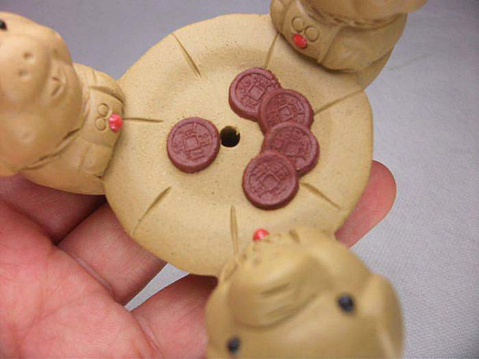 茶漏底座中間的錢幣上的字為:招財進寶。