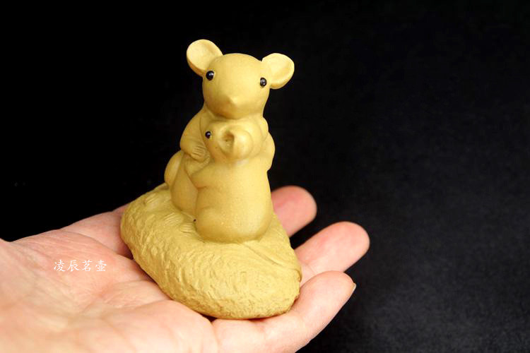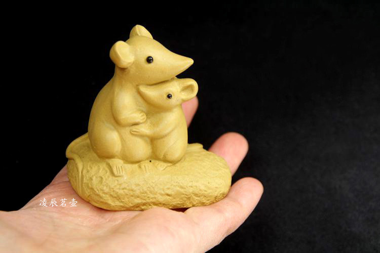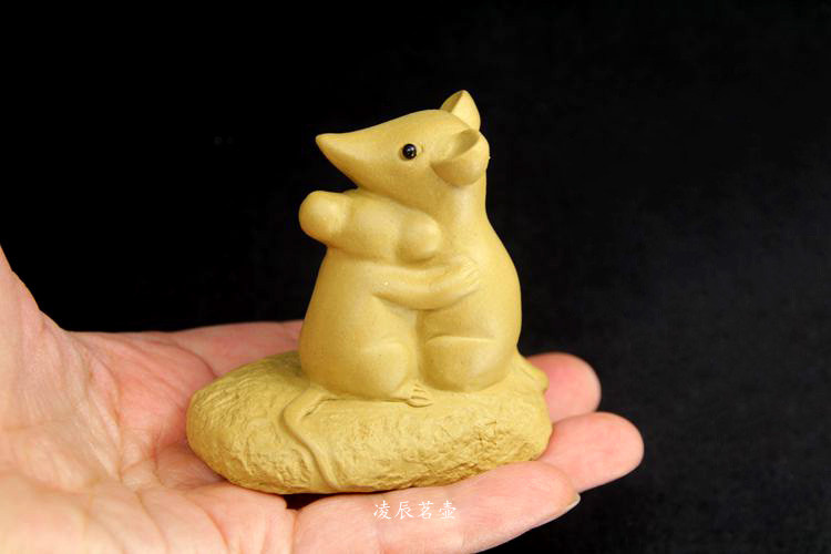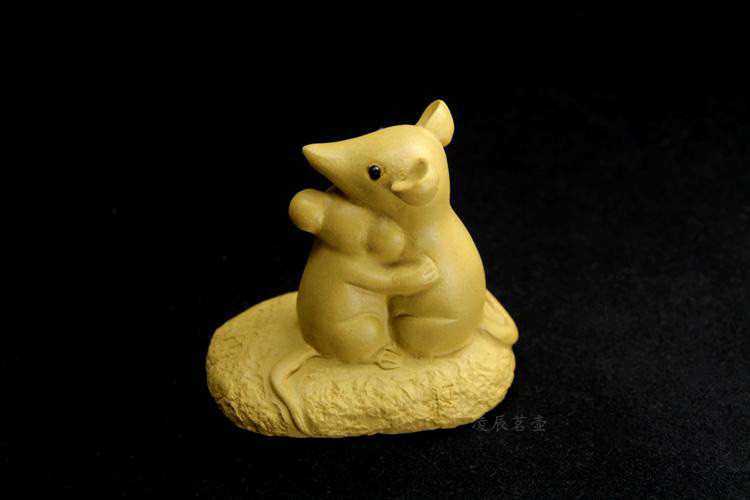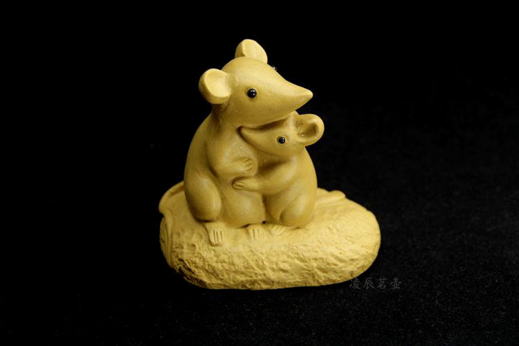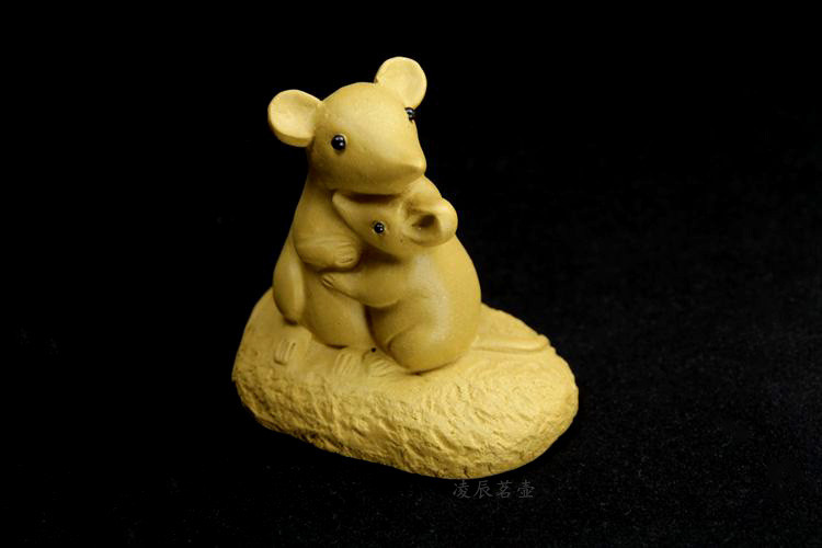 親情茶寵兩個老鼠擁抱擺件精品紫砂小雕塑生肖鼠茶玩茶盤裝飾禮品