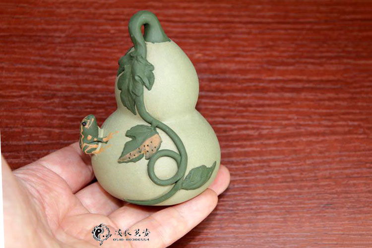 【亮點特色】:葫蘆為福祿諧音,所以為眾人所喜愛,小巧的造型,藤蔓絞織,青蛙攀附,極具田園之趣。小青玩會噴水,茶盤間噴水的一幕更能賞心悅目,逗樂家人。