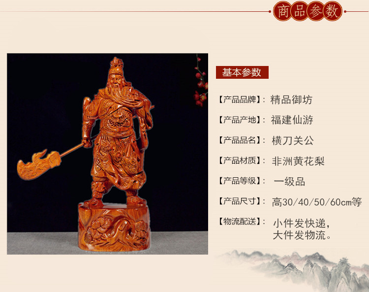 精雕黑檀高30cm黑檀木雕關公佛像擺件大號實木橫刀招財武財神家居花梨紅木工藝品