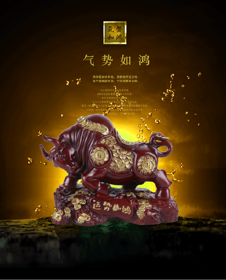 運勢如虹華爾街招財牛辦公室擺件桌面擺設工藝酒柜風水創意裝飾品開業禮品