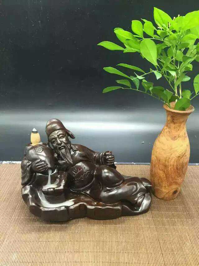 黑檀木雕倒流香爐李白醉酒倒流香爐家居商務辦公擺件紅木倒流香爐