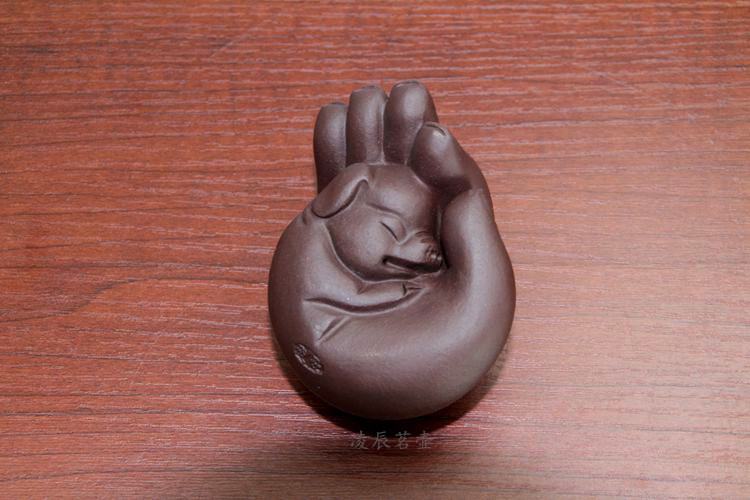 【亮點特色】:憨憨的小豬,睡在手掌中,豬同珠,寓意:掌上明珠。