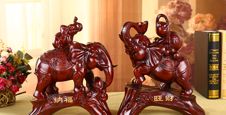 納福大號有底座招財鎮宅大象擺件一對客廳電視柜工藝品風水家居裝飾開業喬遷送禮