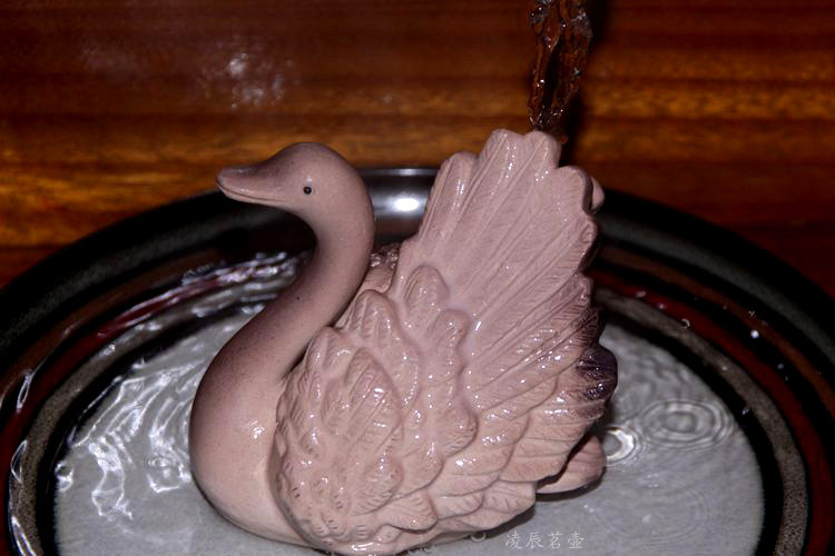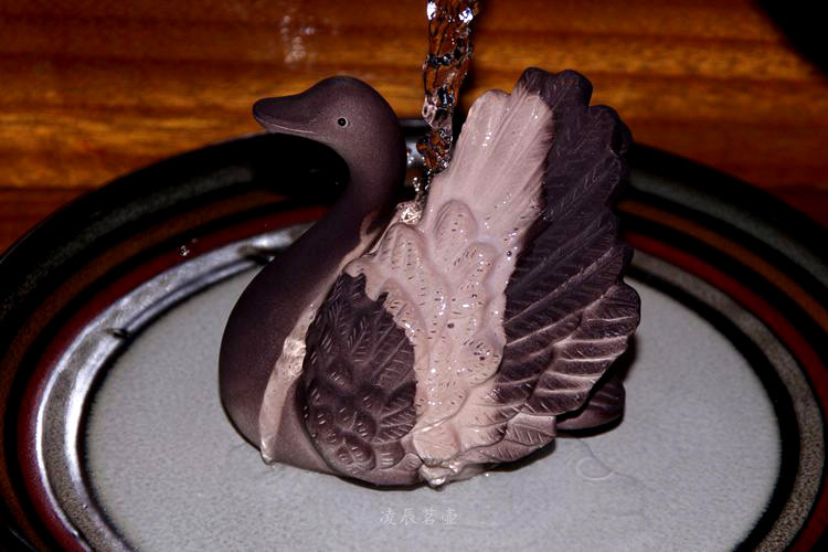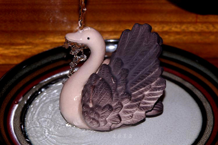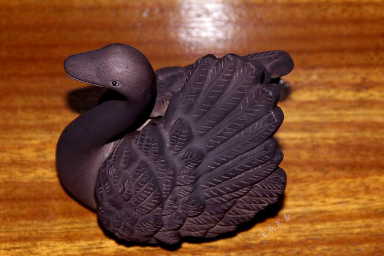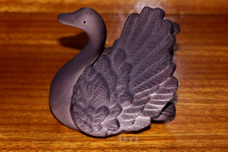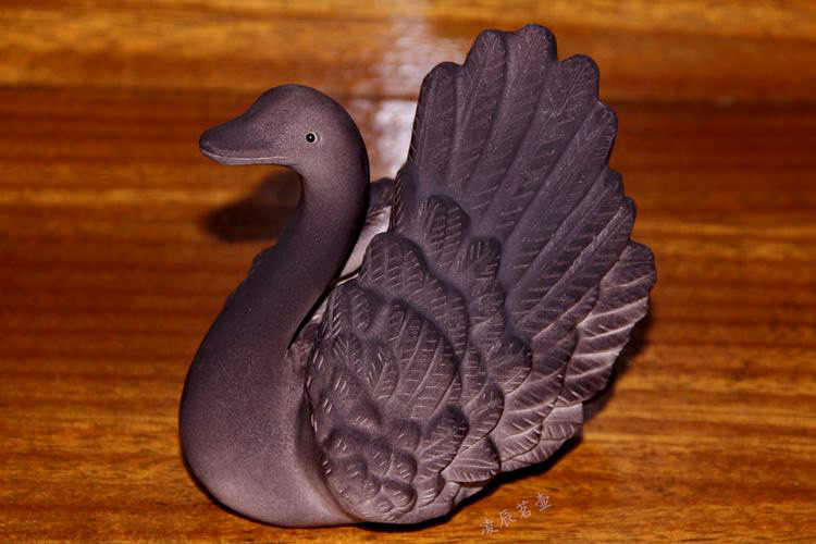 紫砂變色天鵝新品宜興變色茶寵茶玩雕塑擺件黑天鵝變白天鵝鵝