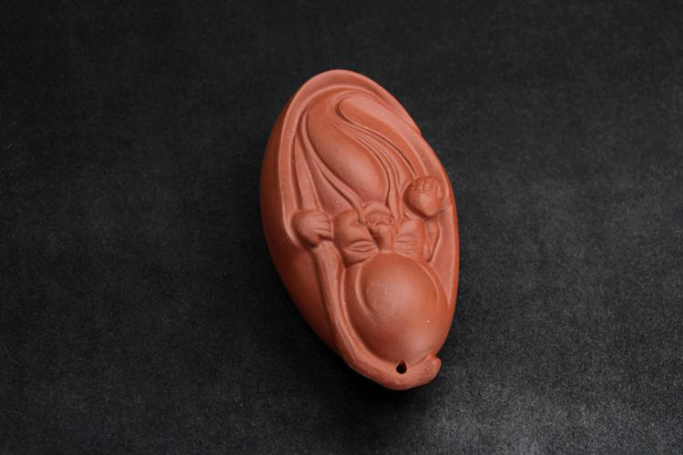 此茶寵上面有孔穿繩子就可當掛件,一物兩用。