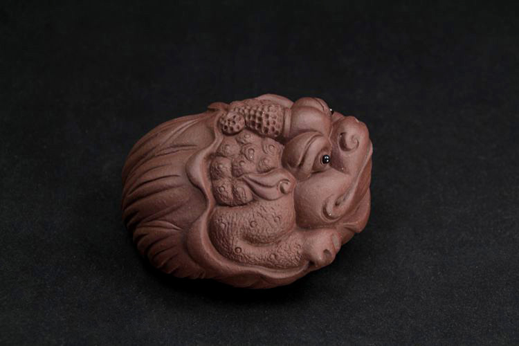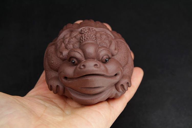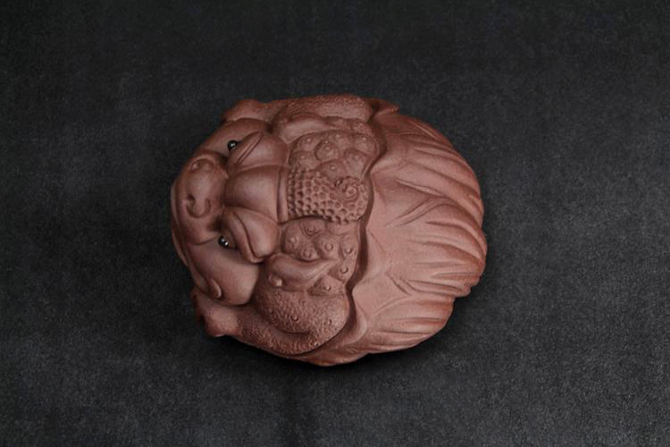 紫砂金蟾全手工獨角荷葉金蟾原礦紫泥宜興茶寵茶玩雕塑擺件僅一件