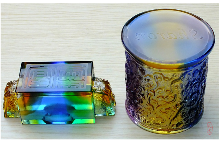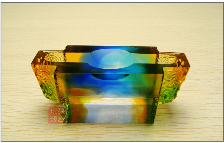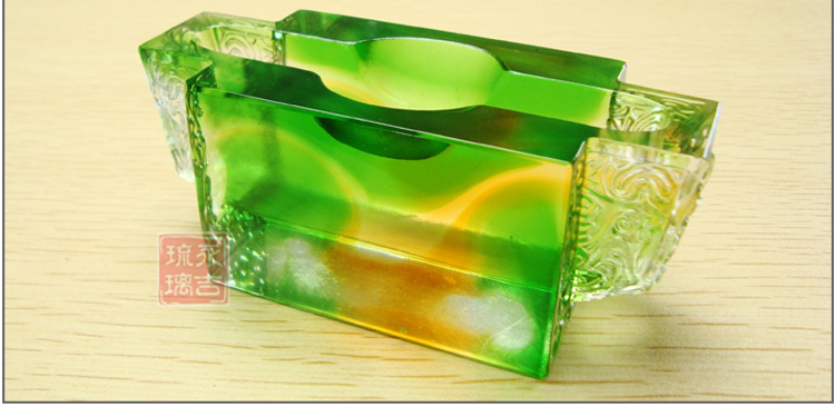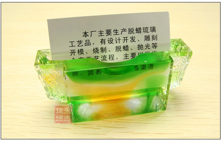 琥珀/綠/藍商務禮品定制生日禮物紀念創意辦公桌名片座擺件創意透明琉璃工藝