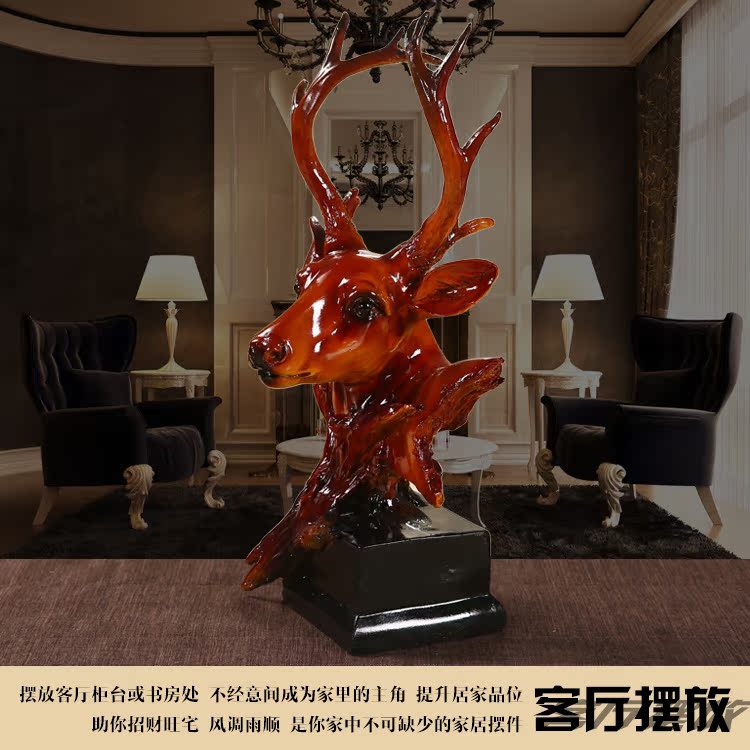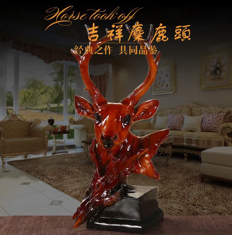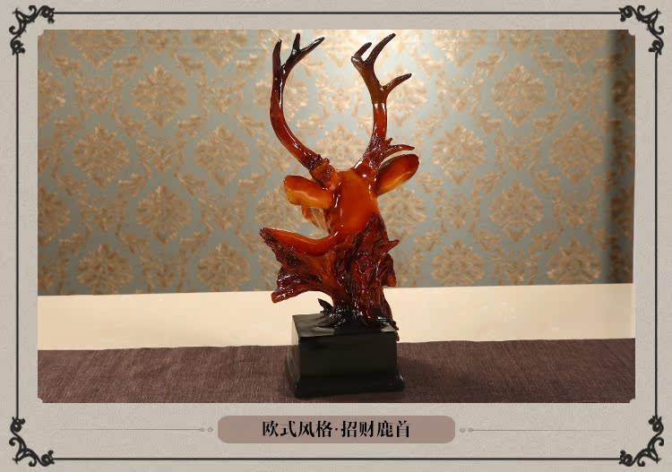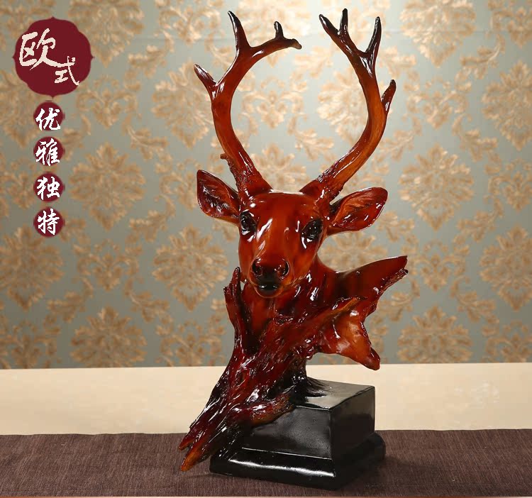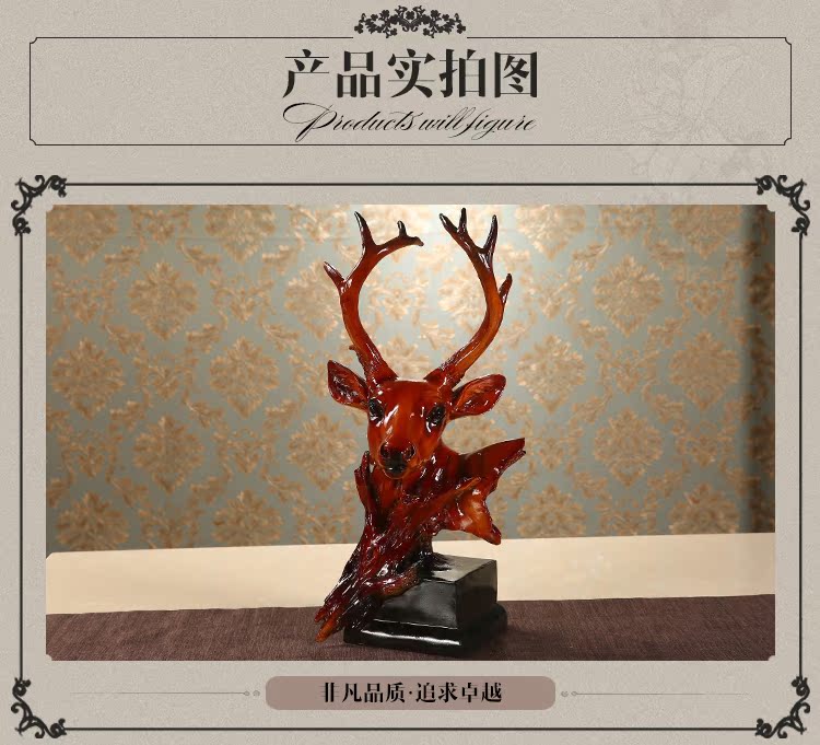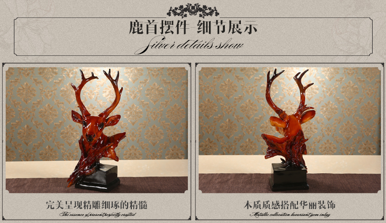 深棕色復古懷舊鹿頭裝飾擺件美式酒吧咖啡廳創意家居飾品樹脂工藝擺設