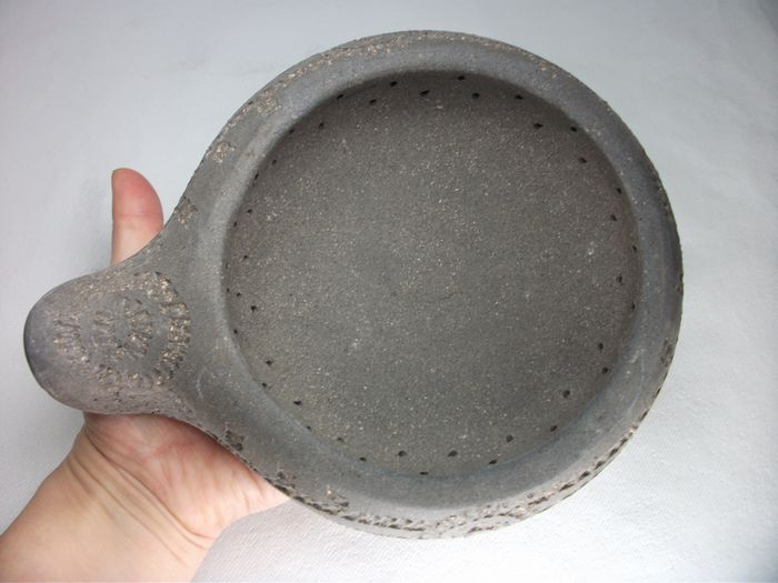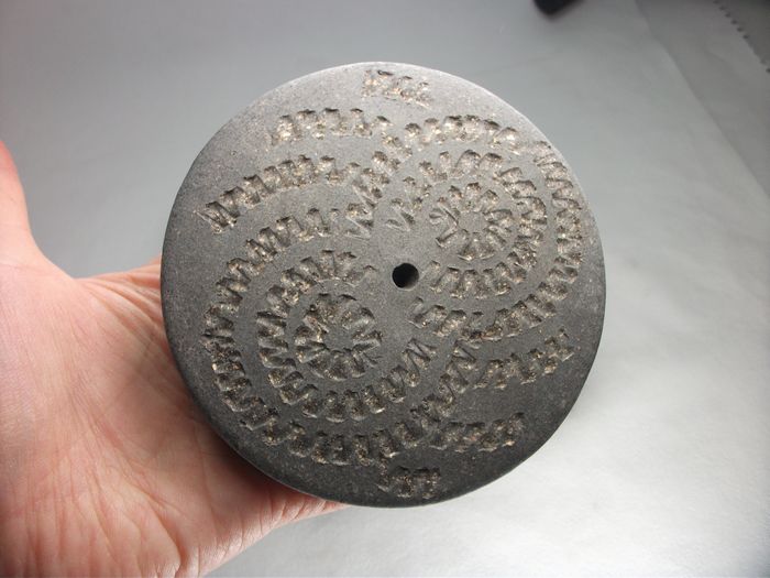 上面石磨規格:長度:18.8厘米;寬度:16.2厘米;高度:6.4厘米。