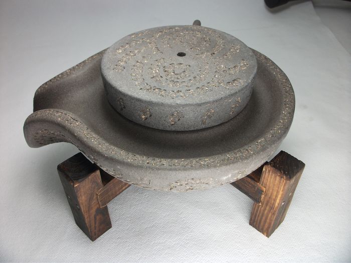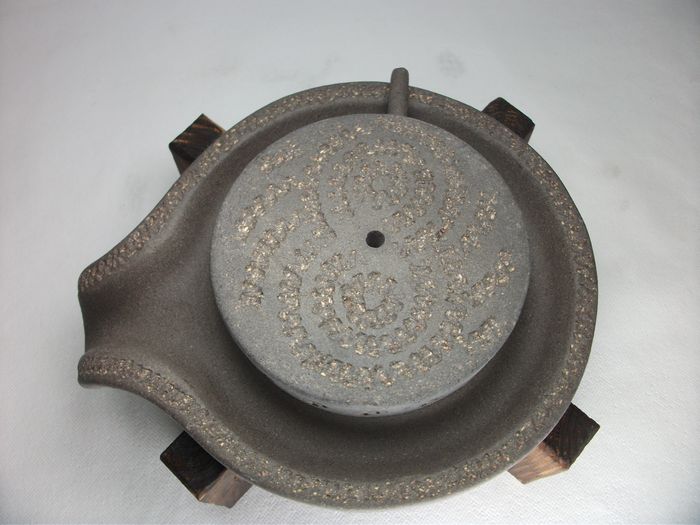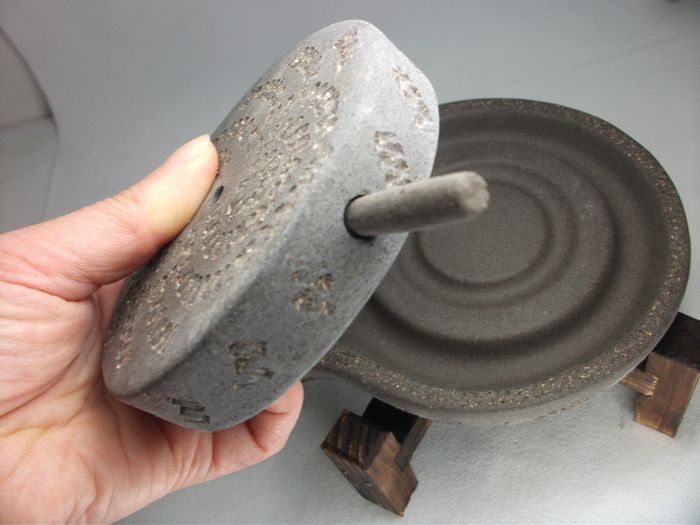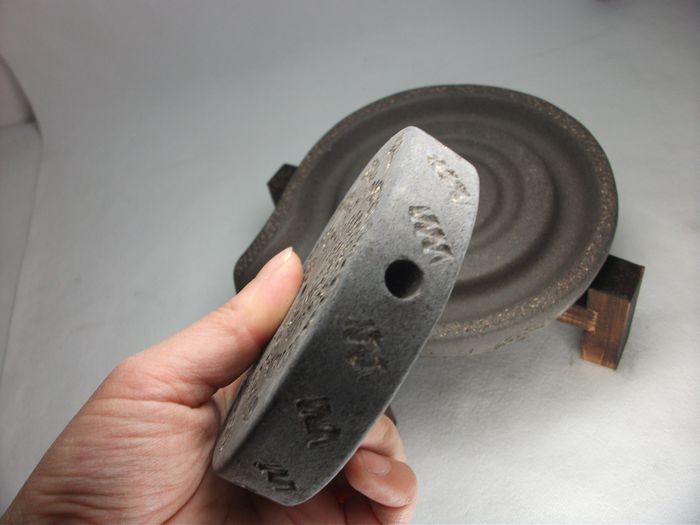 石磨轉盤的邊上有個小洞,把紫砂小棒插進去