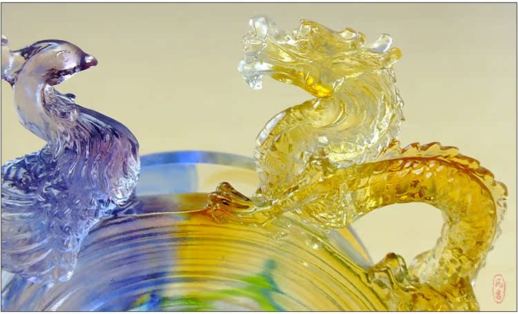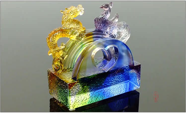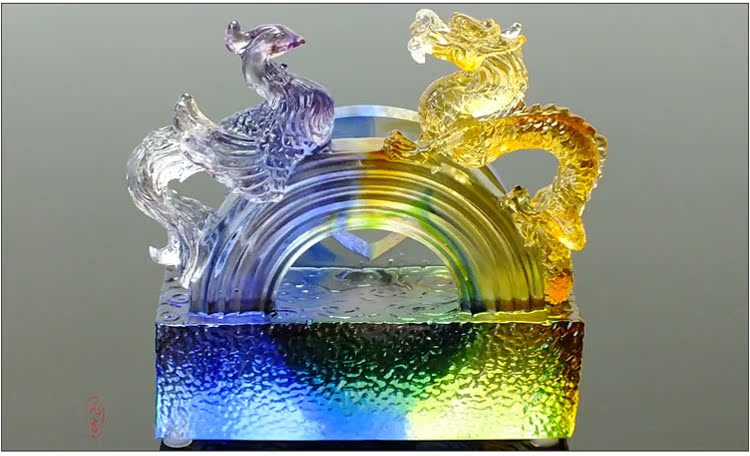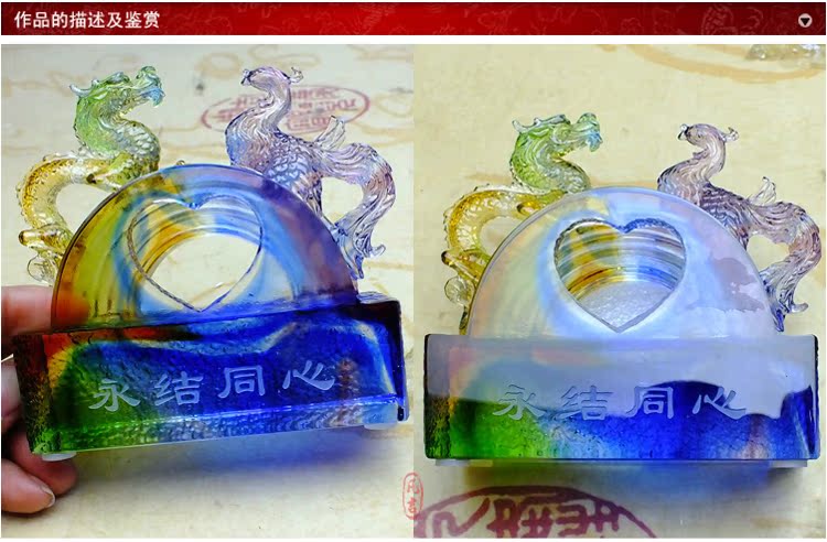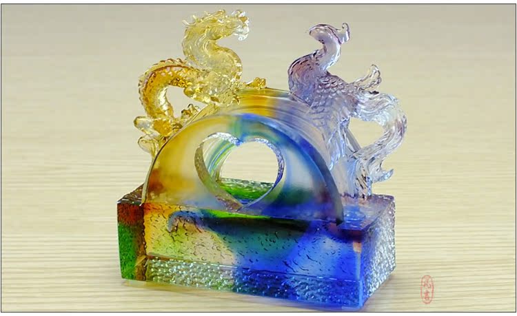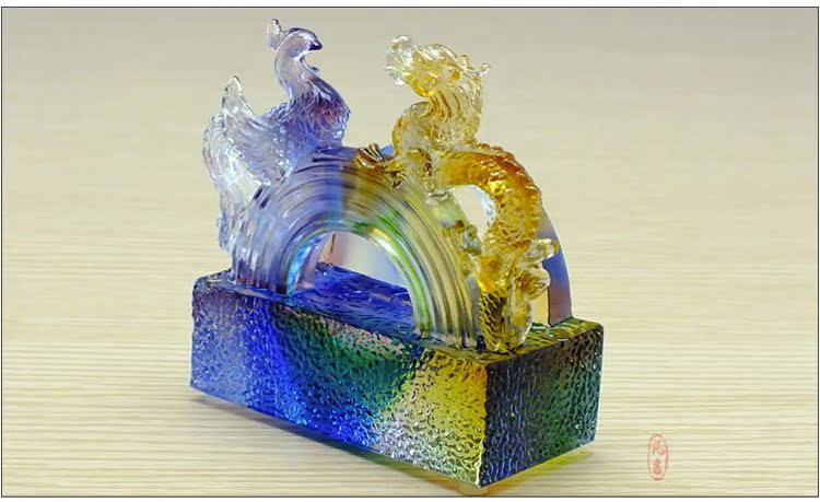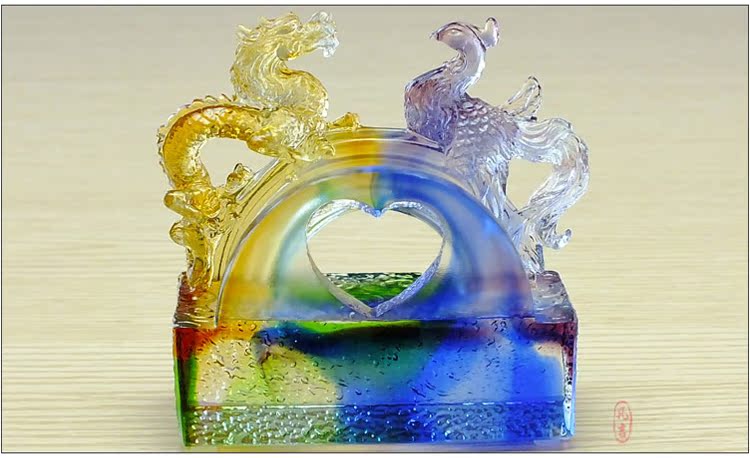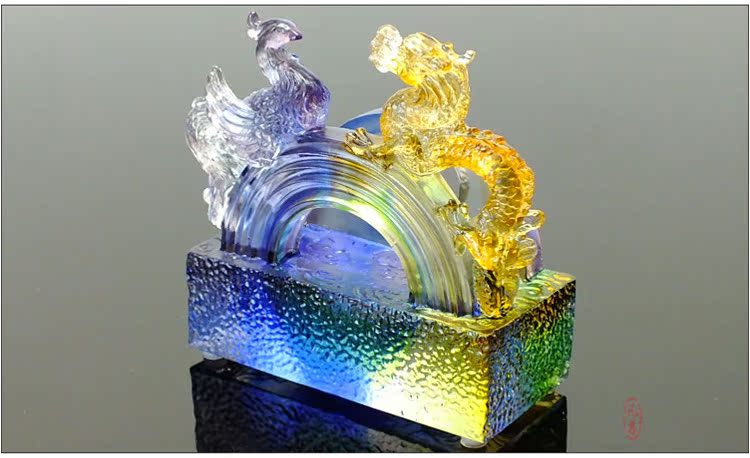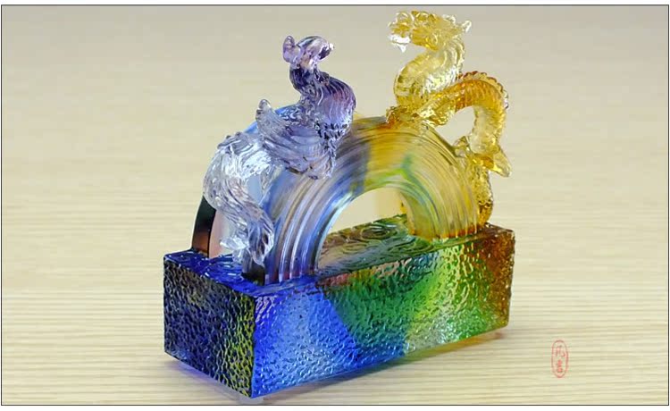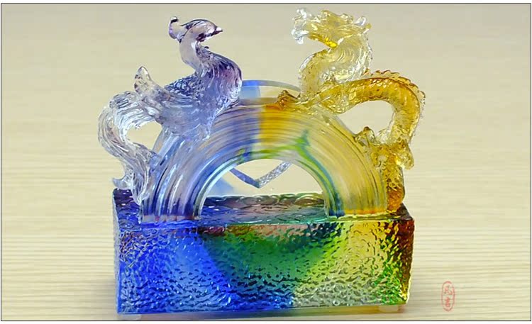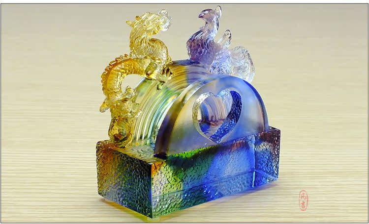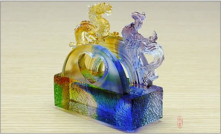 商務禮品辦公桌面創意龍鳳名片座透明高檔同事結婚小禮物琉璃擺件