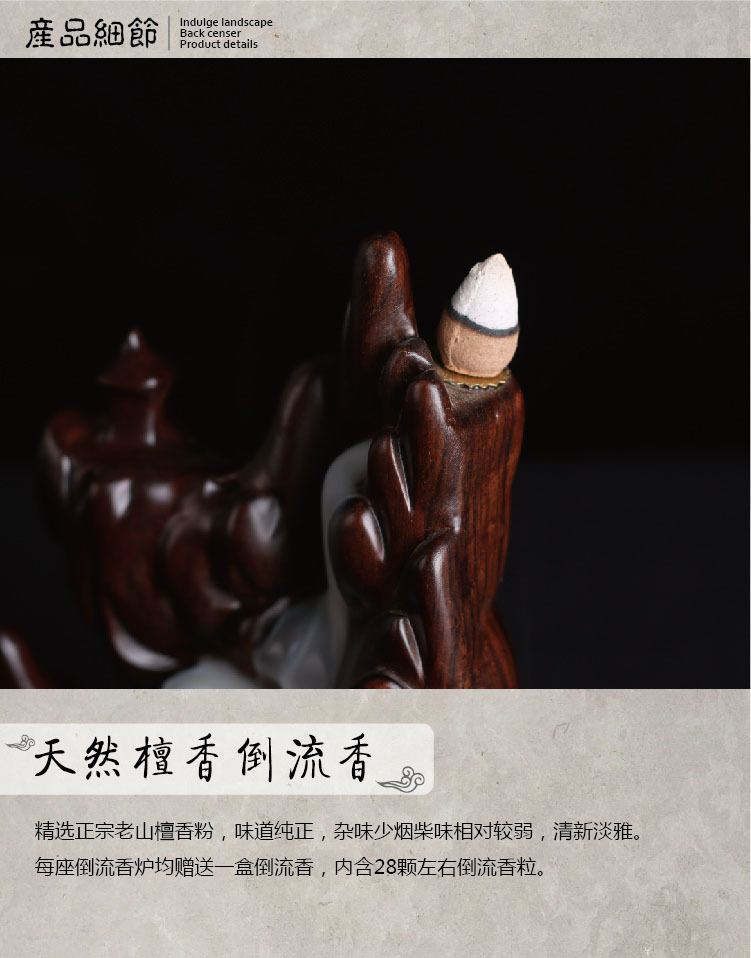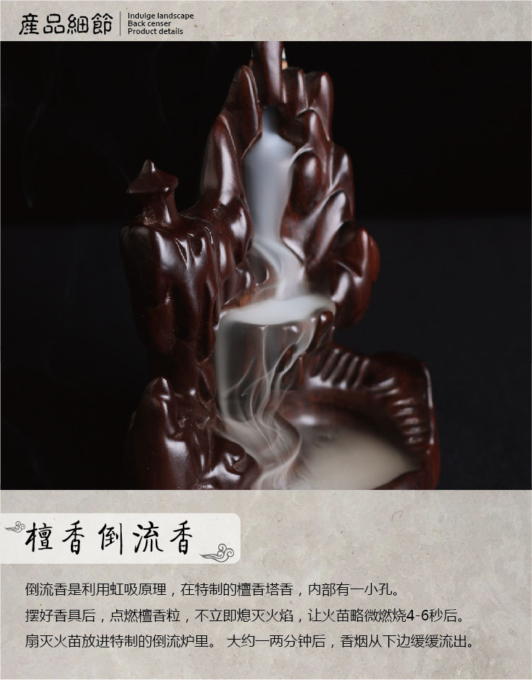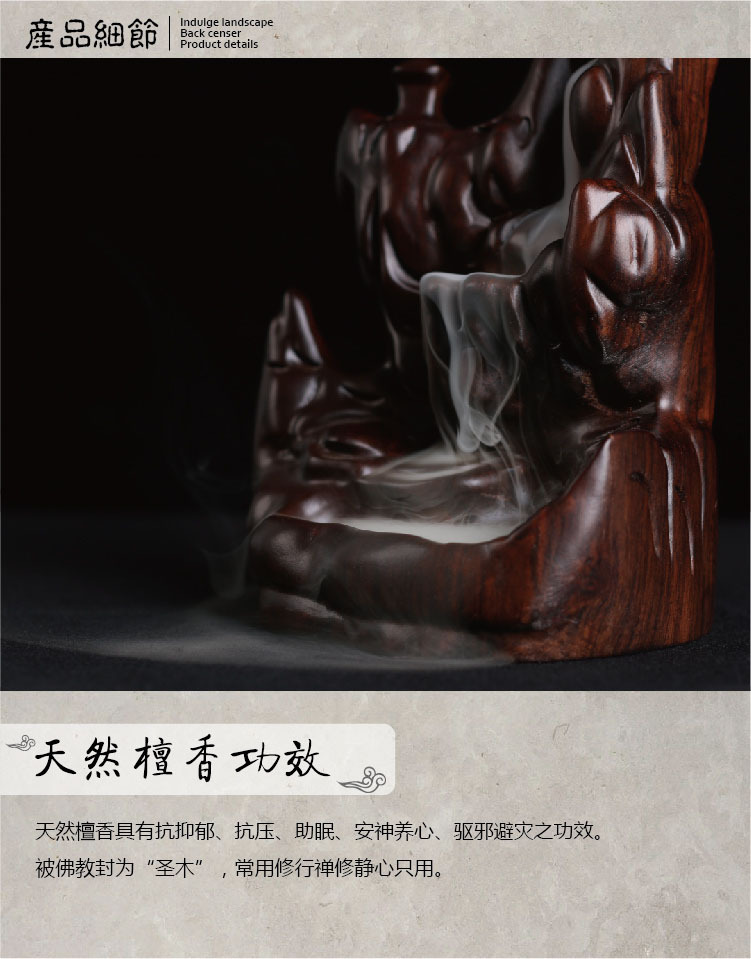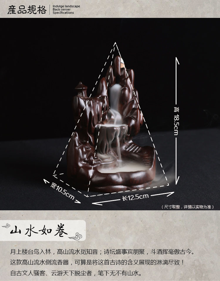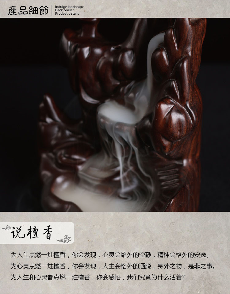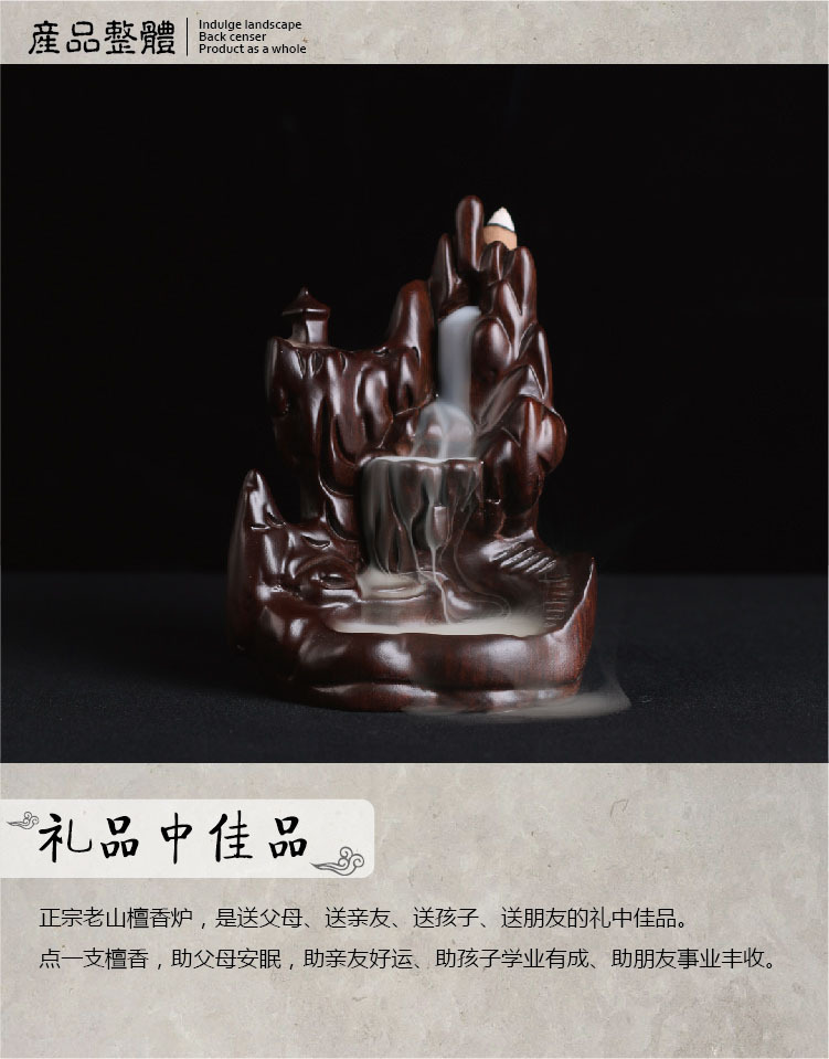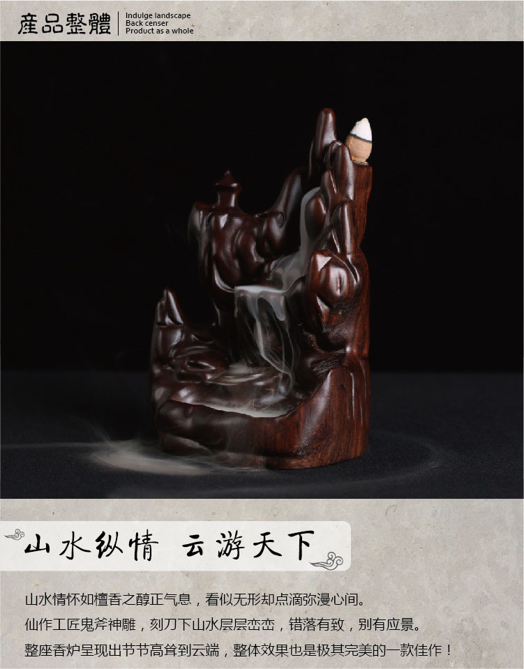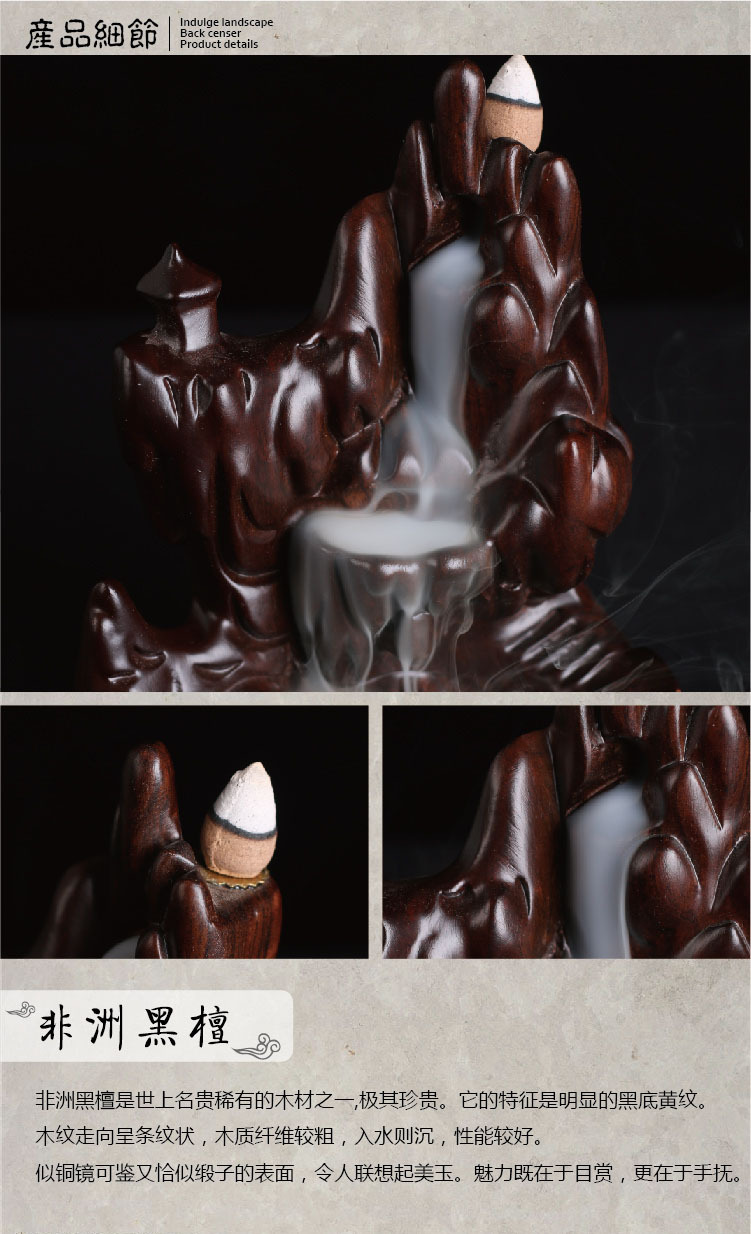 高山流水(12.5*寬10.5*高18cm)黑檀木雕高山流水創意茶道倒流香爐紅木塔香薰爐倒流煙沉香爐擺件