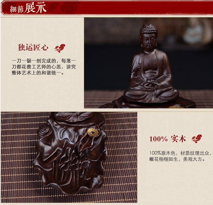 高4cm*12cm*18cm黑檀木如來倒流香爐 木雕字佛像薰香爐工藝 家裝禮佛香道禮品擺件