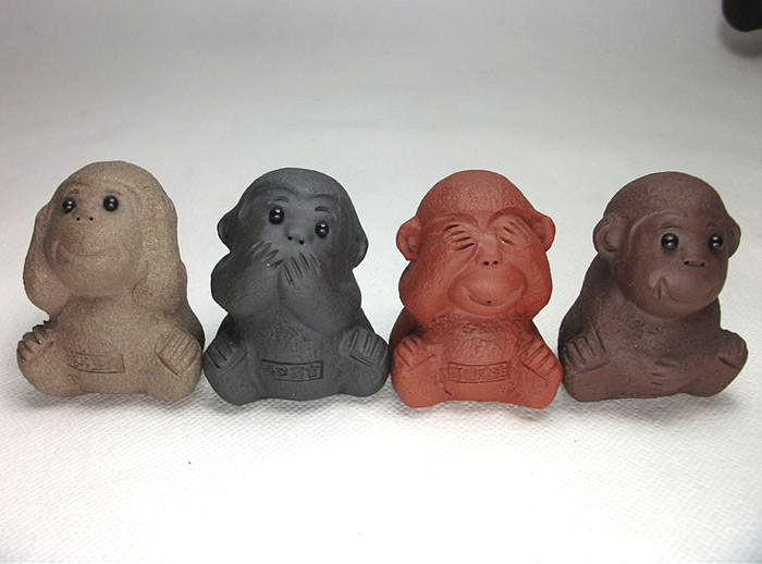 特價宜興紫砂壺茶寵茶玩擺件雕塑猴子 四不猴 不聽不說不看不動
