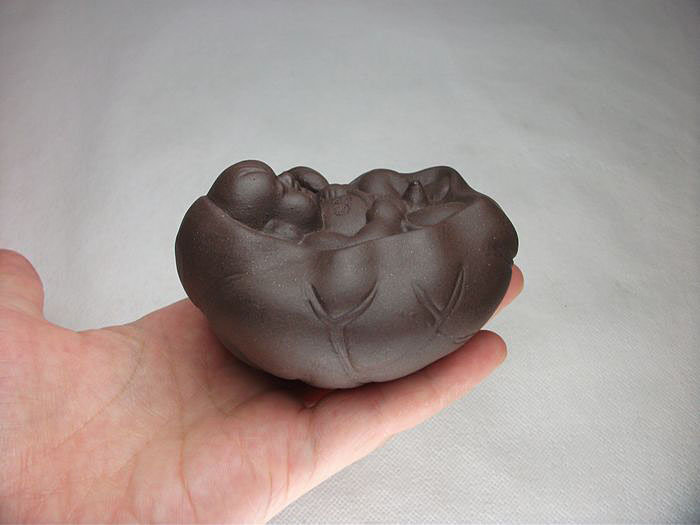 特價 宜興 紫砂雕塑擺件 茶寵茶玩 噴水茶寵 荷花童子 荷葉童子
