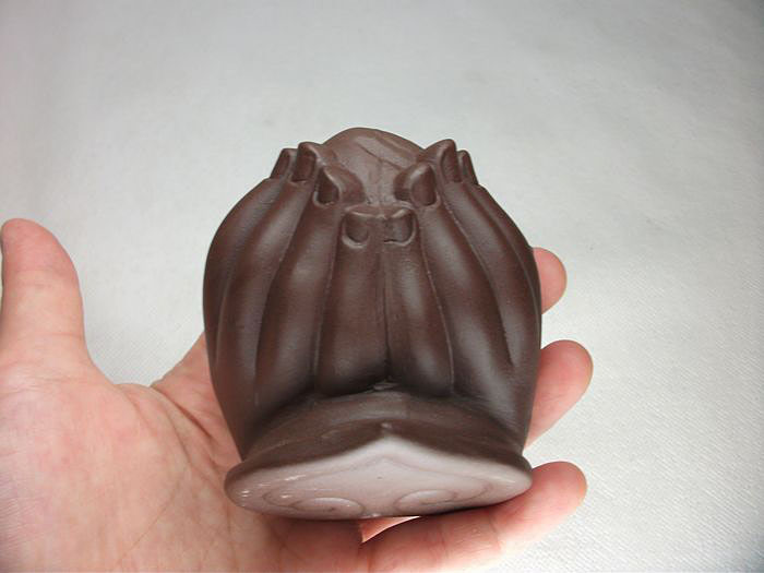 把茶寵浸泡水中,讓茶寵充分喝飽水,拿出后搖一搖,感覺有水很多的時候,再用滾燙的開水澆上,這時會有細水柱從小童的小雞雞處噴出,景象特別壯觀。