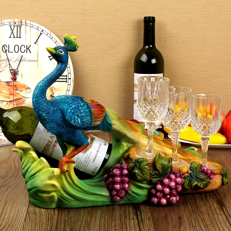 香檳色酒架620歐式酒柜孔雀紅酒架擺件家居裝飾品擺件喬遷結婚禮物樹脂創意禮品