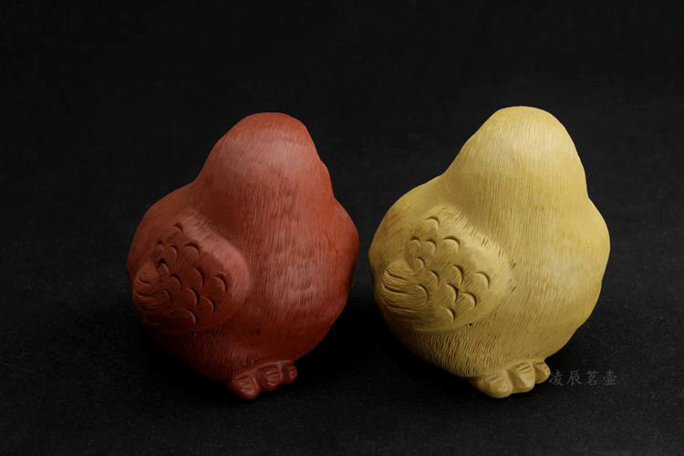 紅色紫砂雞手工茶寵雕塑茶具盤擺件絨毛小雞發財雞年大吉大利茶玩小鳥
