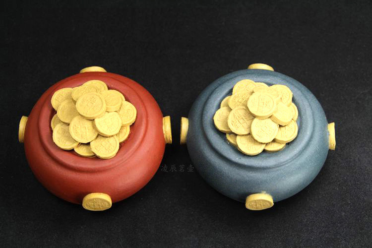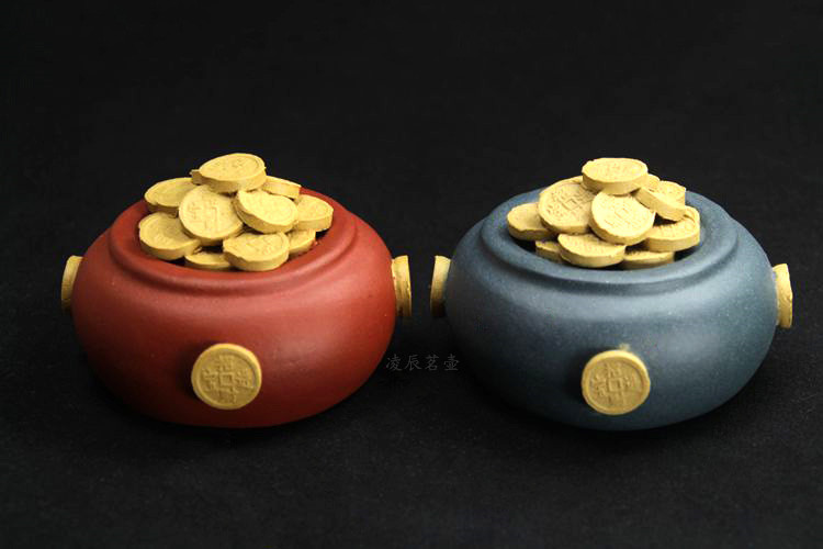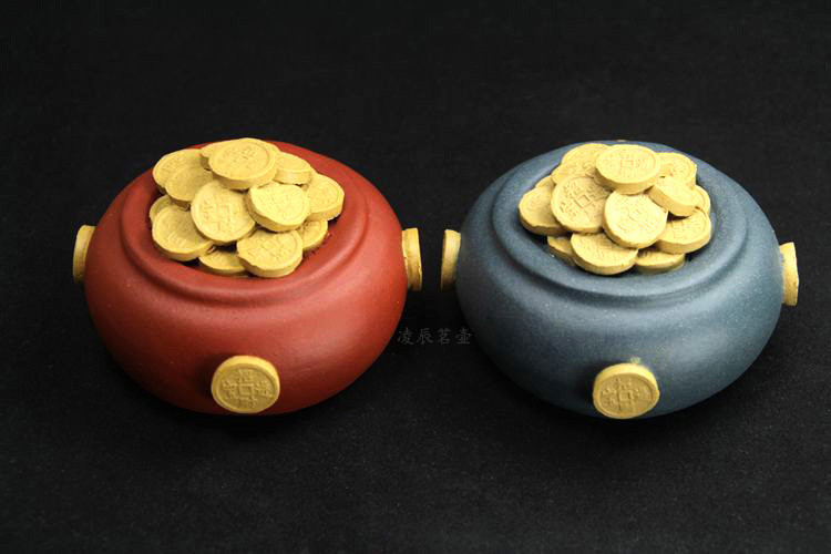 紅色紫砂聚寶盆招財進寶茶寵金寶茶玩宜興茶具旺運家居擺件雕塑禮品
