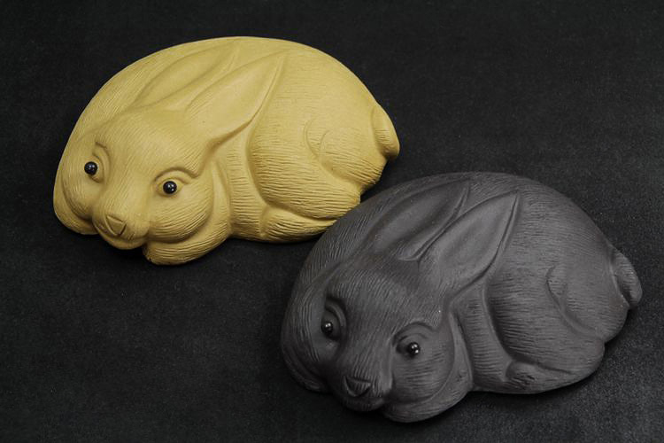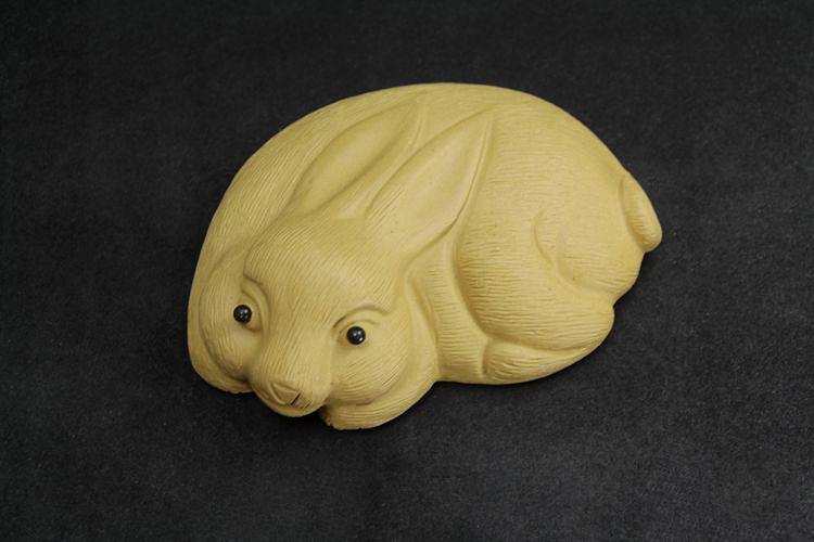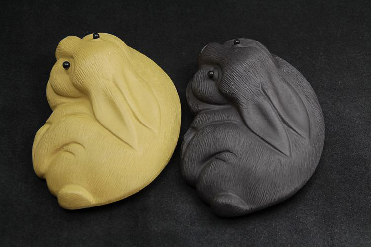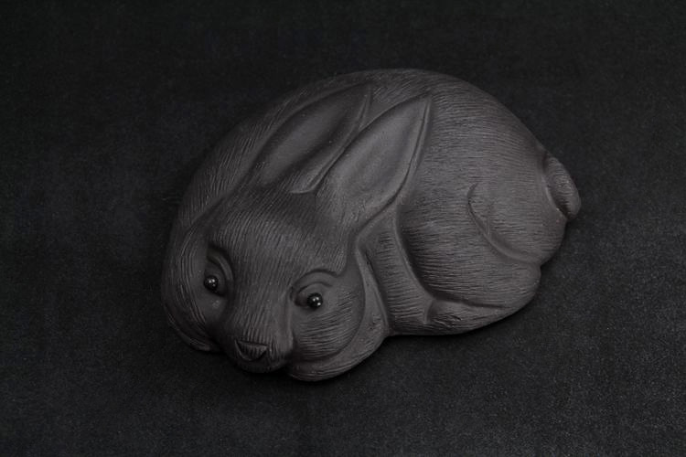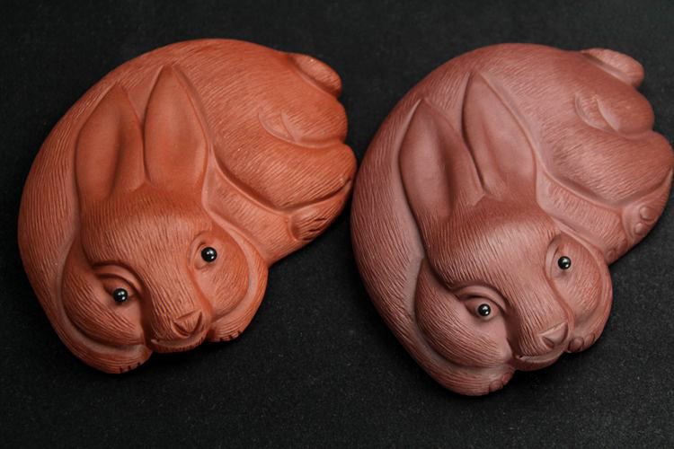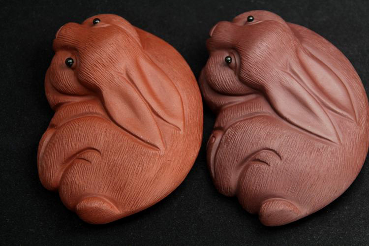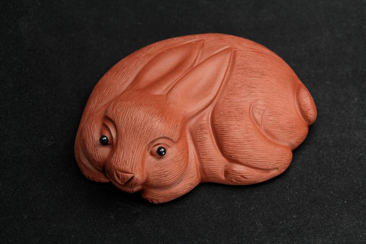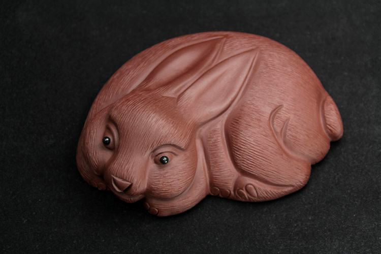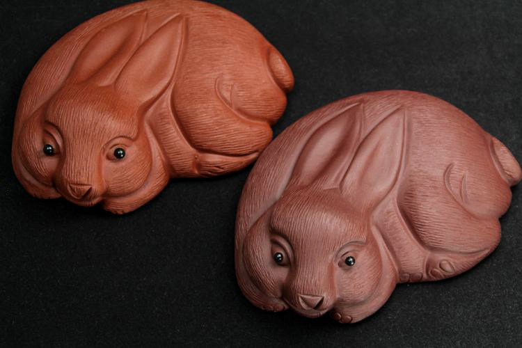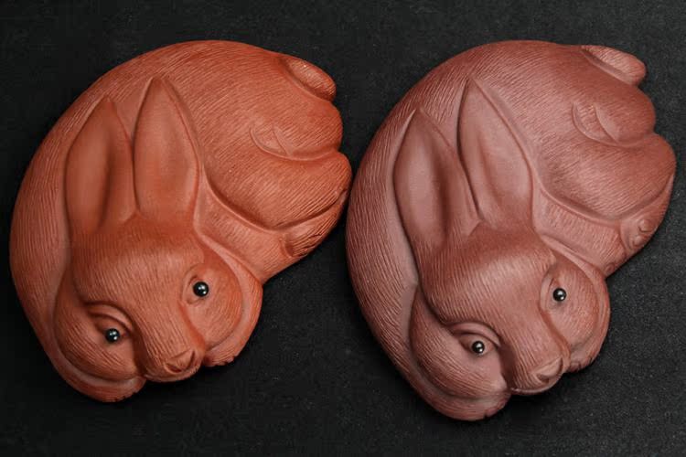 紅色拉毛小兔子原礦紫砂泥茶寵擺件精品生肖兔茶玩雕塑茶盤配件飾禮品