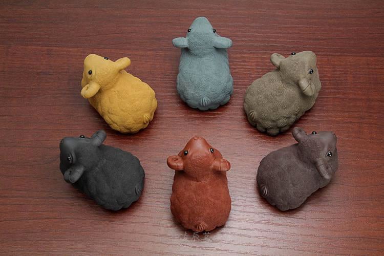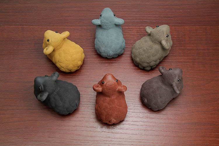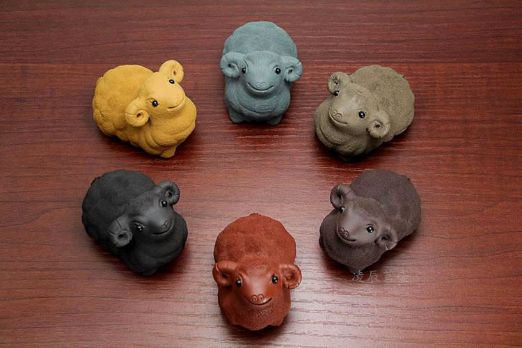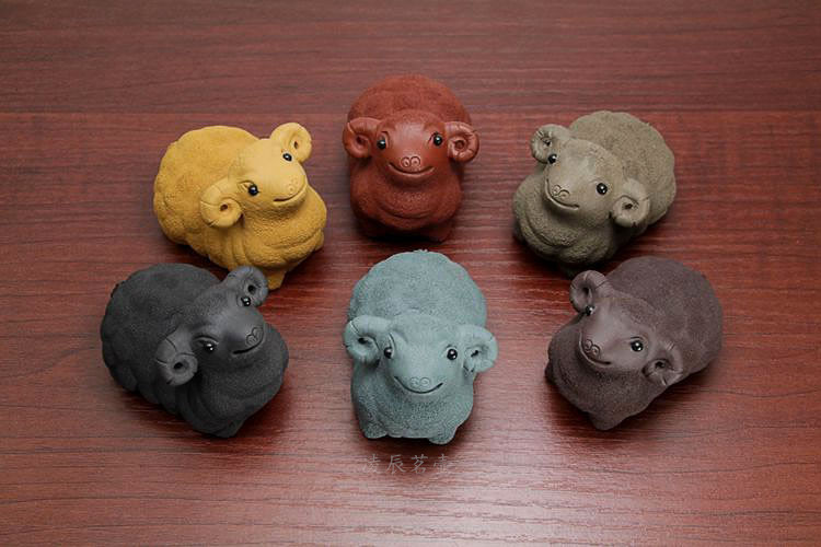 紅色宜興 紫砂雕塑擺件 茶寵茶玩 小山羊綿羊 喜羊羊與灰太狼 喜洋洋
