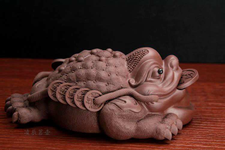 招財進寶 霸氣金蟾 蜍宜興紫砂茶寵精品擺件大號 名家全手工茶玩