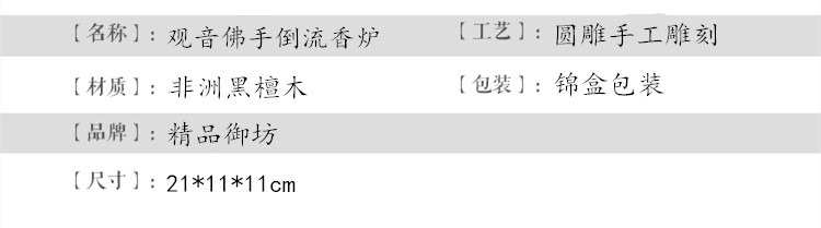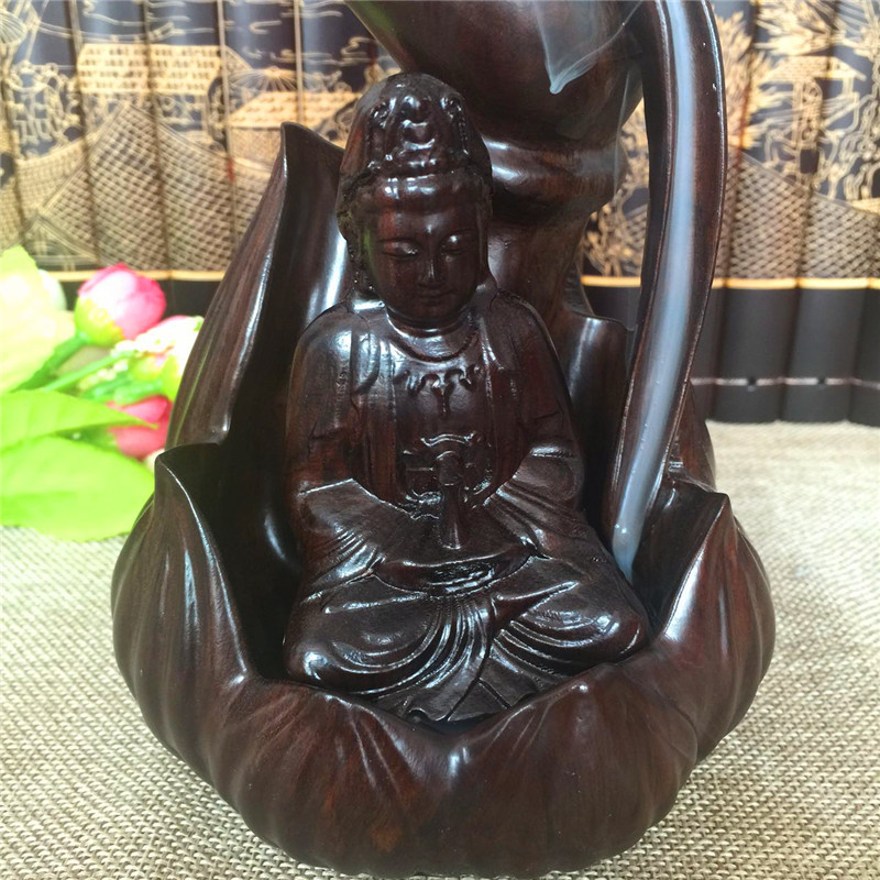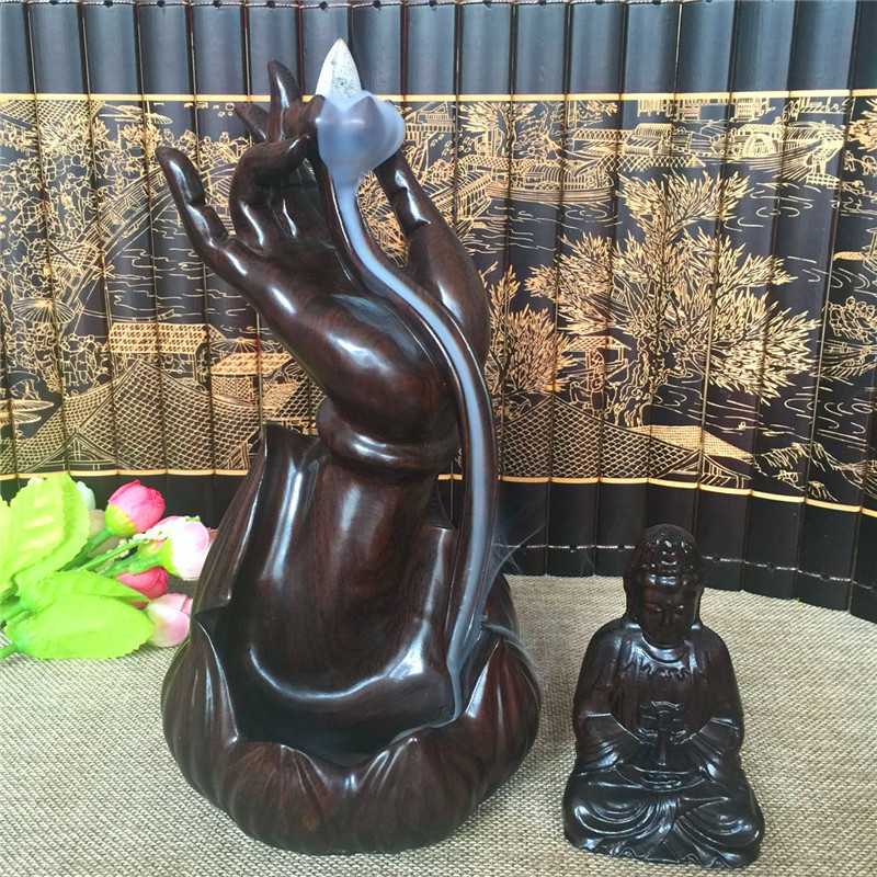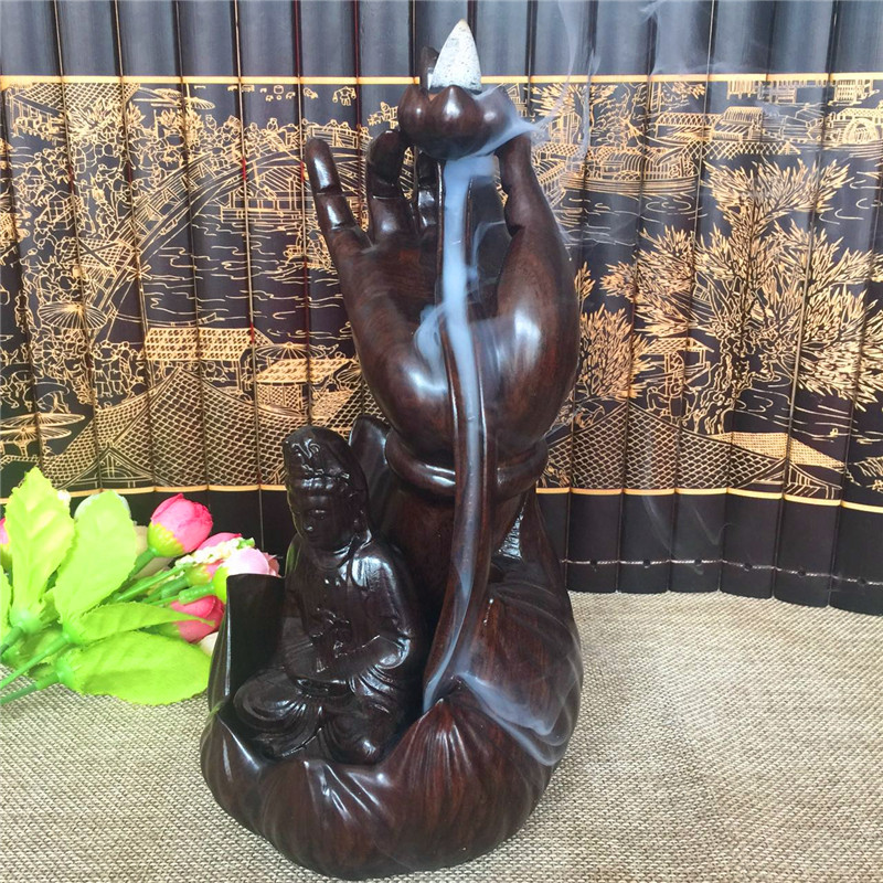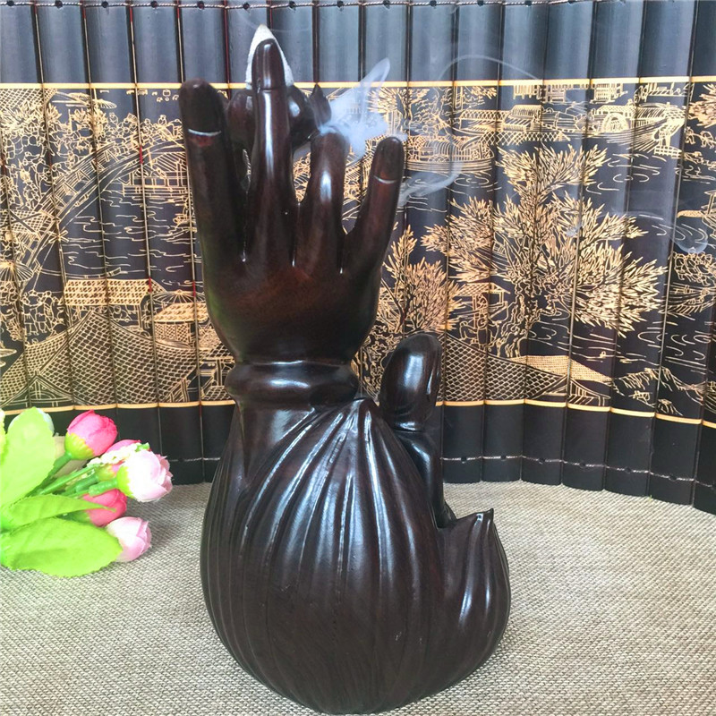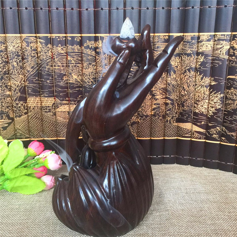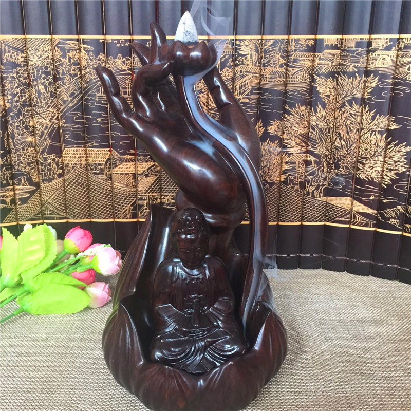 佛手觀音倒流香黑檀木雕觀音佛手倒流線香爐臥香爐香插佛具茶道擺件紅木創意香爐