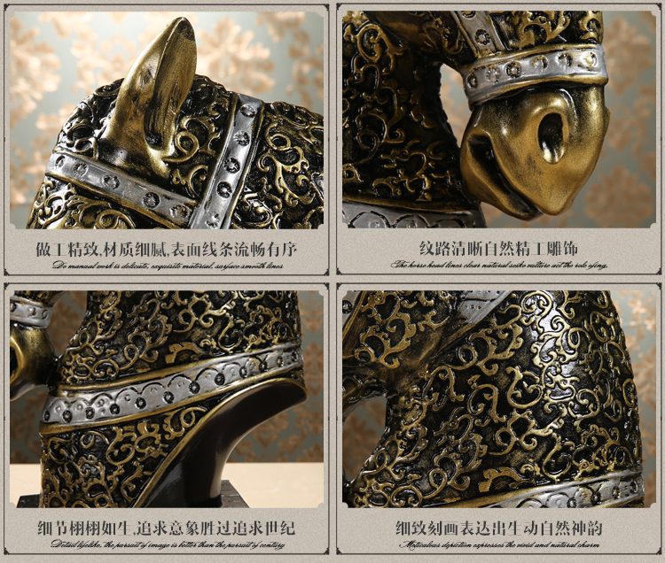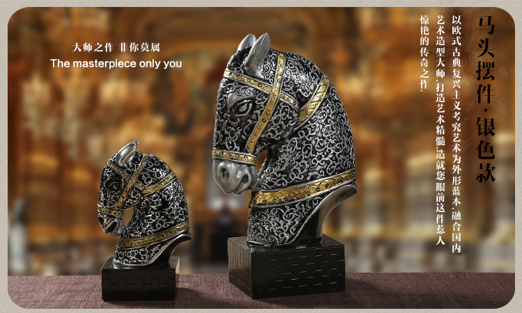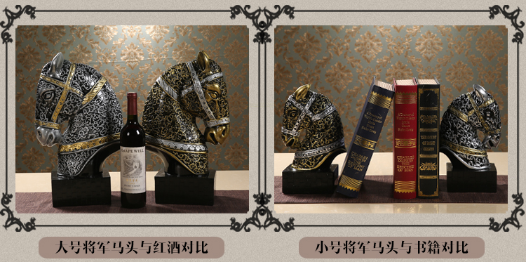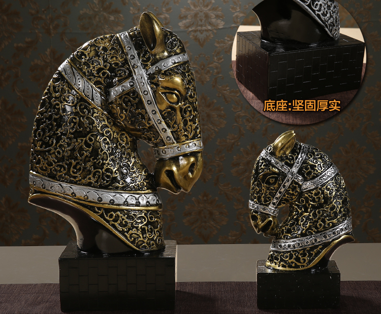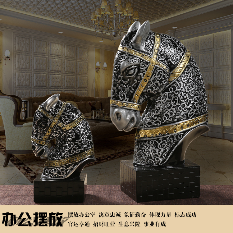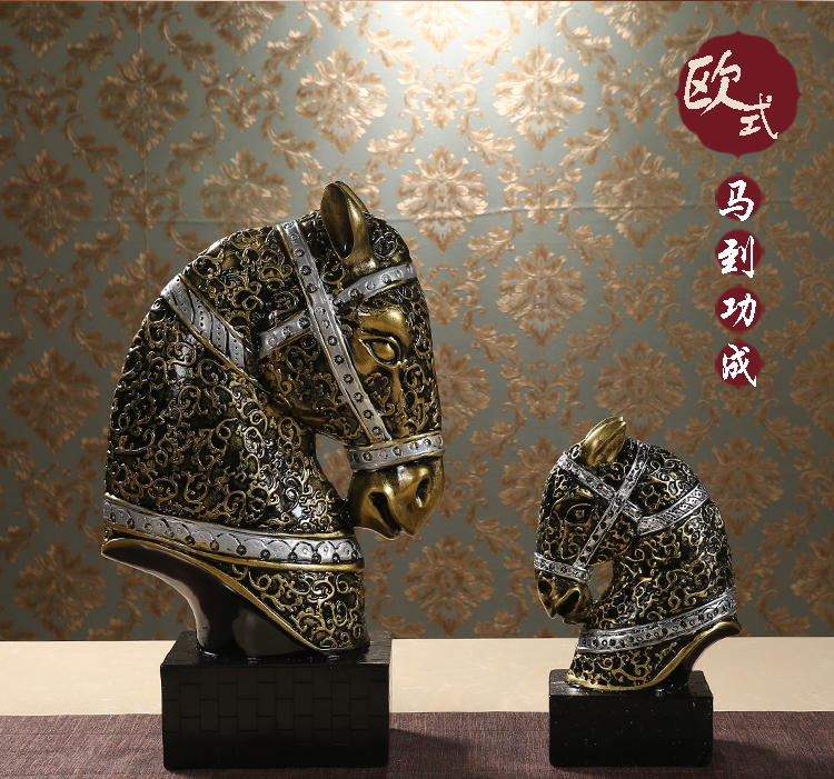 小號金 馬頭歐式家居招財馬工藝品擺件客廳將軍馬頭酒柜電視柜辦公裝飾品擺設