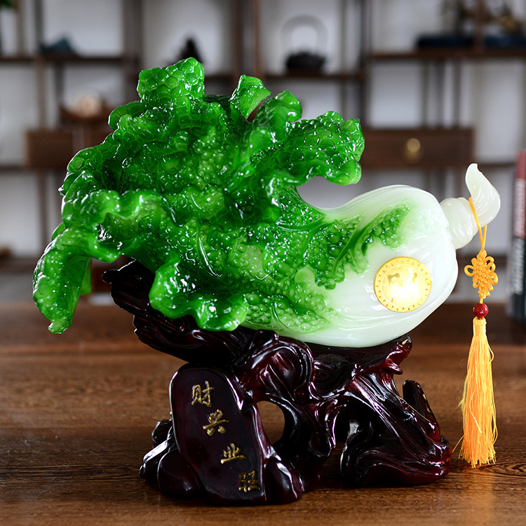 小號仿玉財業興旺小號大號白菜擺件樹脂工藝品客廳店面收銀臺裝飾禮品