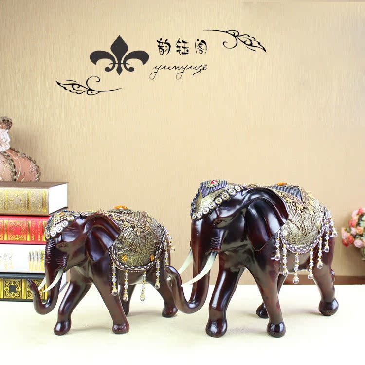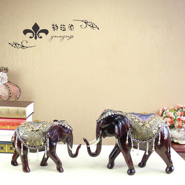大號39*17*28CM婚慶禮品樹脂工藝品家居裝飾品擺設高貴仿紅木情侶大象擺件禮品