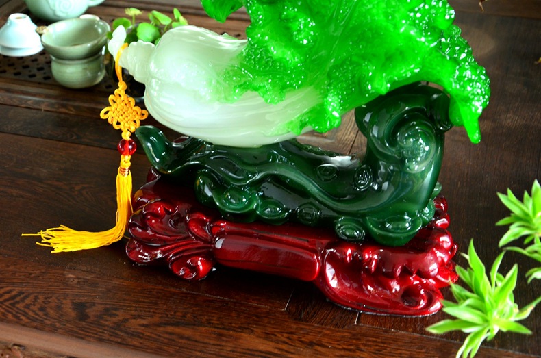 大號32*16*32CM財隨人意室內擺件樹脂工藝品玉白菜擺件家居裝飾商務禮品人參白菜