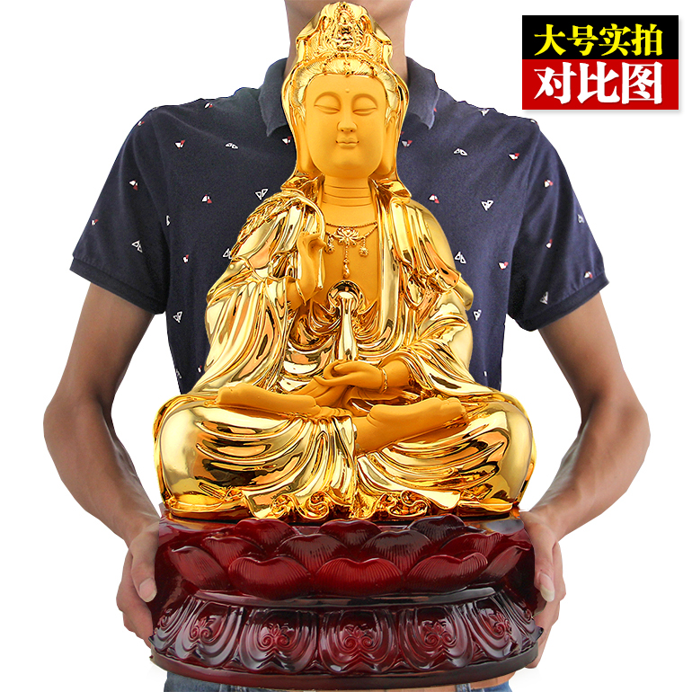 FY大號鍍金:觀音賜福開光南海坐蓮觀音佛像擺件觀音菩薩金客廳供奉保家庭平安工藝飾品