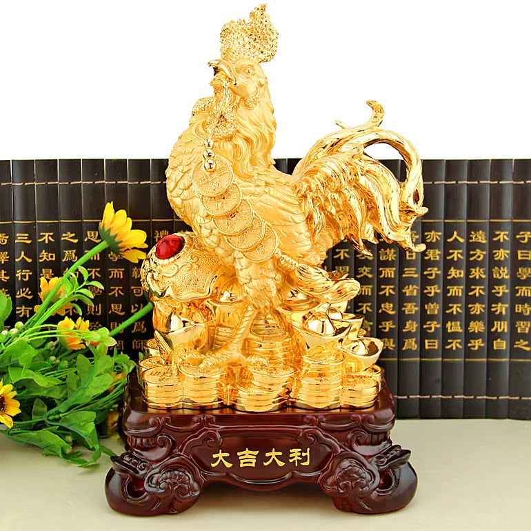 DWS鍍金:大吉大利招財生肖雞擺件大號 家居客廳金雞報喜樹脂工藝裝飾品擺設開業禮