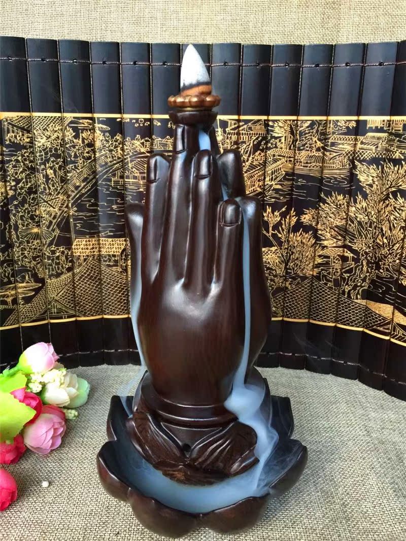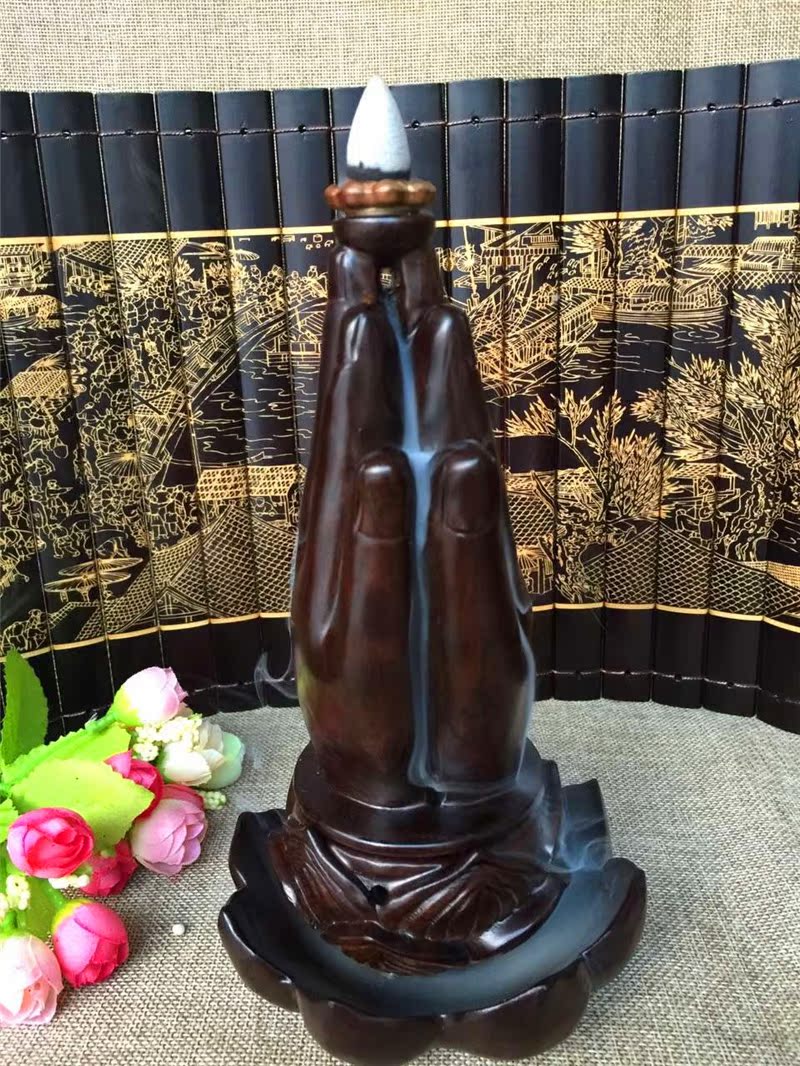 【產品名稱】黑檀木雙手合十倒流檀香爐