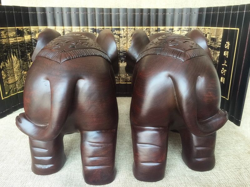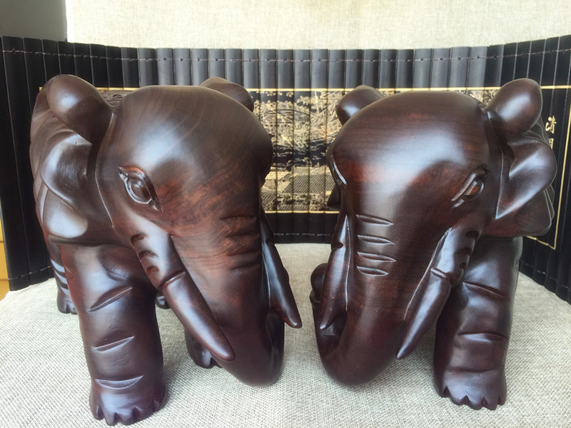 10厘米一對黑檀木雕大象擺件紅木對象整木雕刻實木招財象工藝品家居飾品禮品