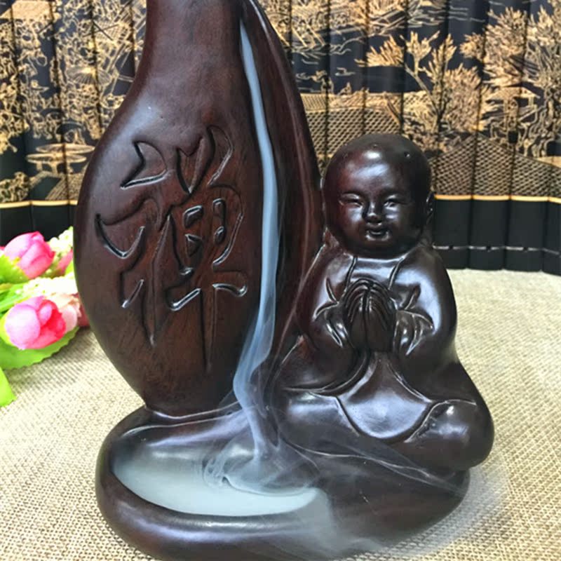 【產品名稱】黑檀木小和尚參禪倒流檀香爐