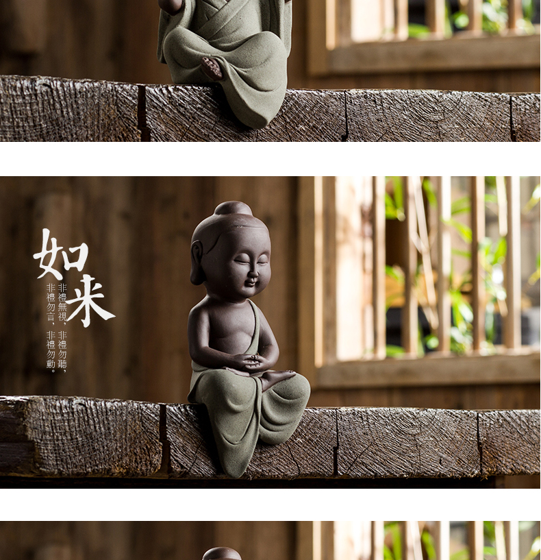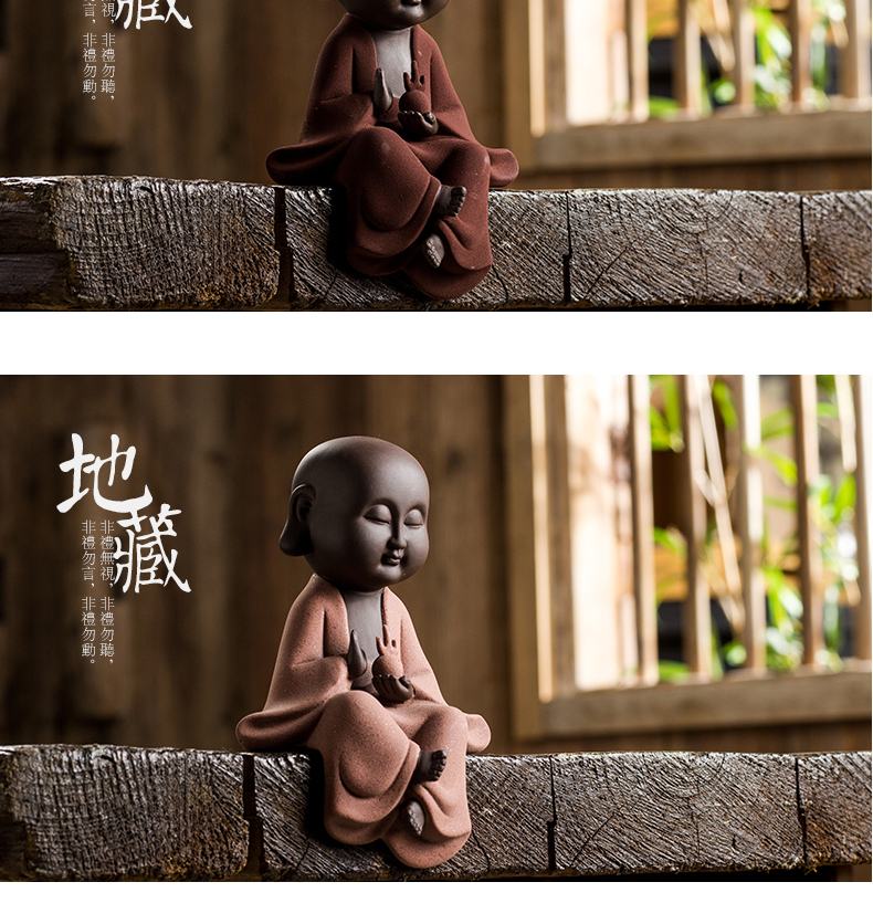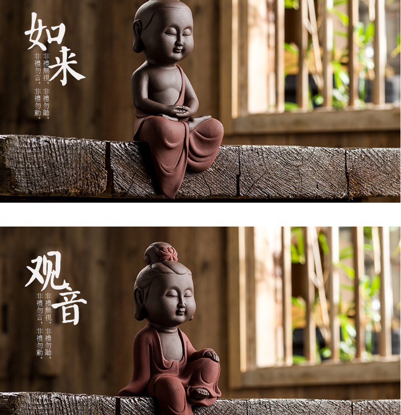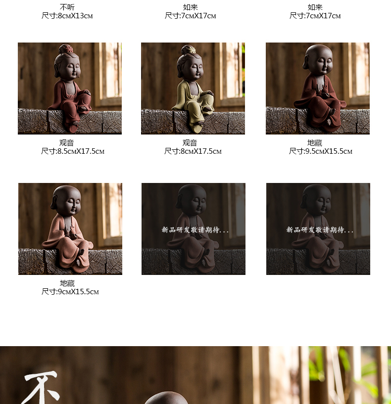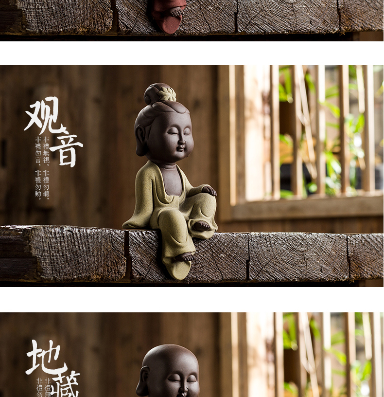 觀音 紅茶寵茶道擺件創意彩砂披坐四不小和尚觀音 如來 地藏招財擺件