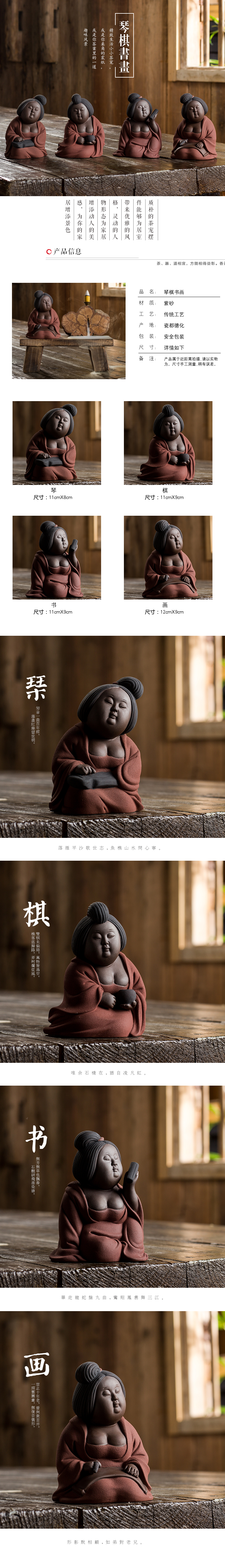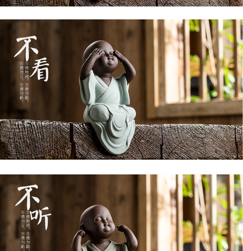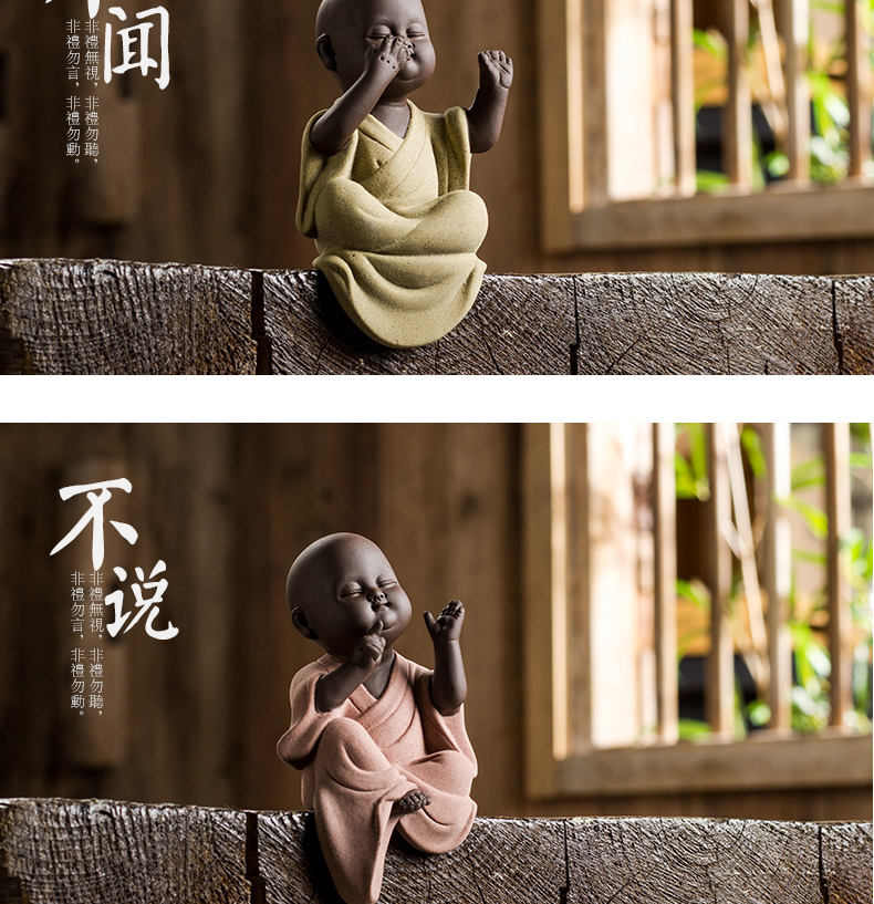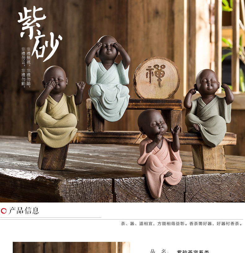 觀音 紅茶寵茶道擺件創意彩砂披坐四不小和尚觀音 如來 地藏招財擺件