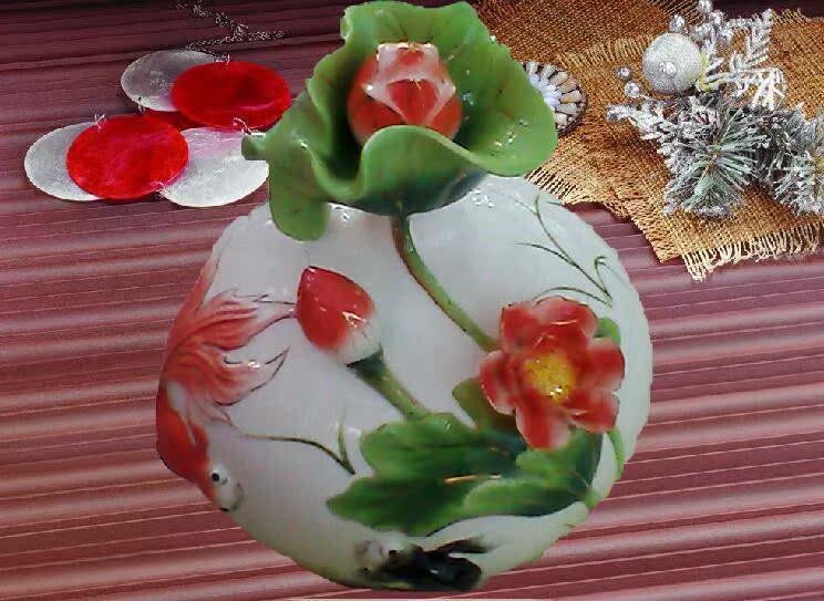 藝術陶瓷酒瓶魚與荷花荷葉10斤工藝瓷瓶 家居裝飾珍品珍藏瓷