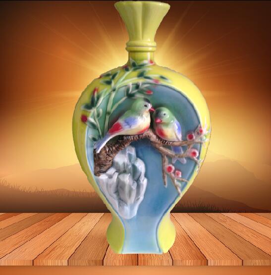 藝術陶瓷酒瓶5斤裝(喜鵲立枝頭)工藝瓷瓶 家居裝飾珍品珍藏瓷