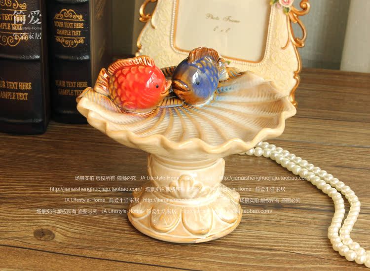 雙魚高腳盤陶瓷水果盤干果盤糖果盤裝飾盤雜物盤鑰匙盤歐式家居飾品擺件裝飾