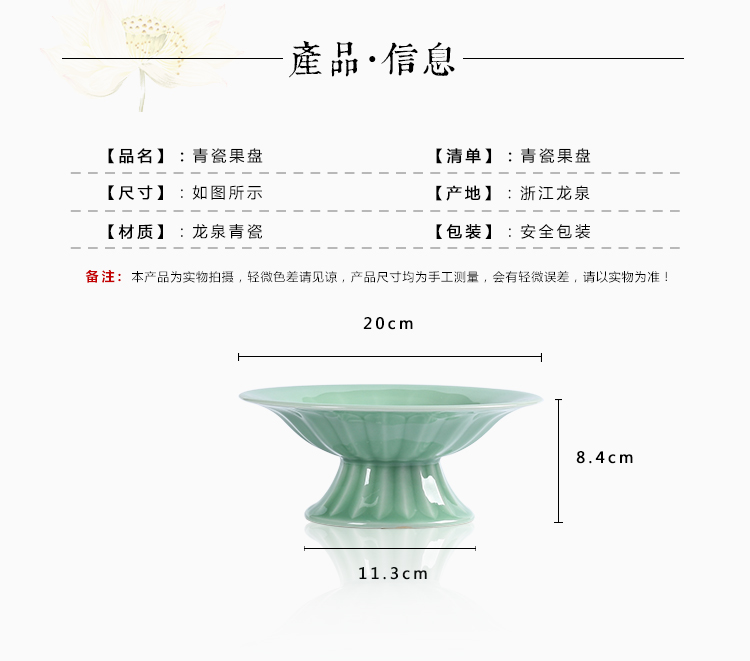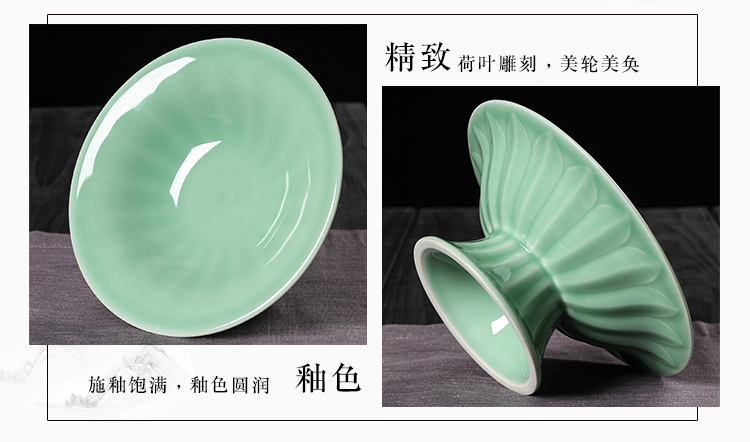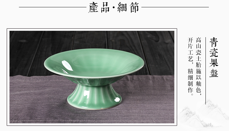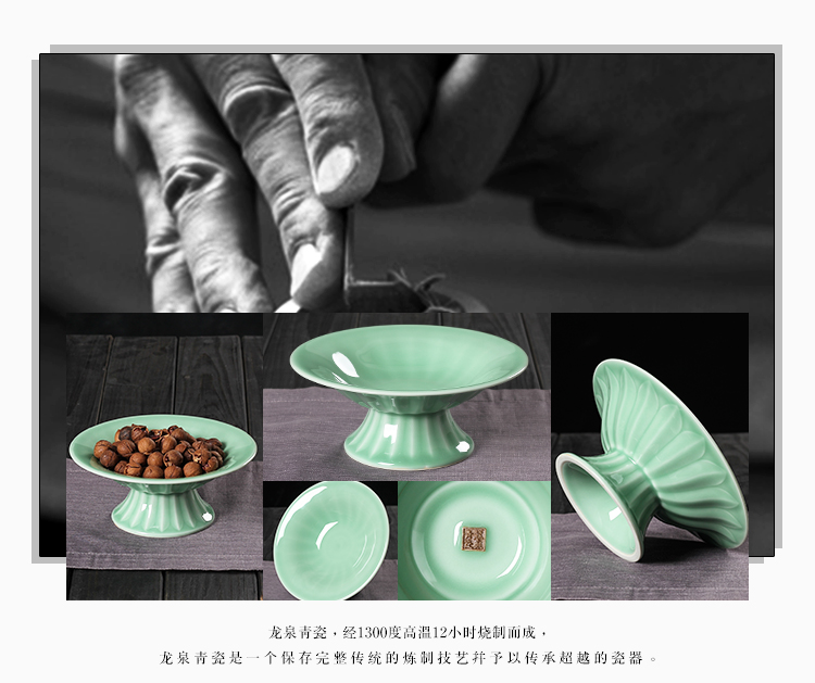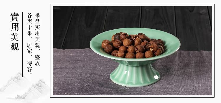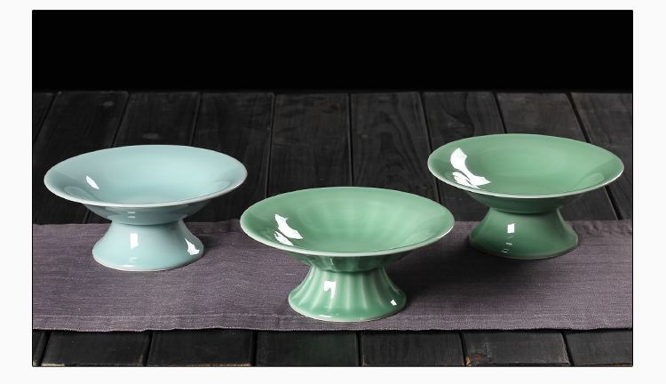 藍色龍泉青瓷茶盤陶瓷干果盤高腳盤子供盤佛具家居多用擺件