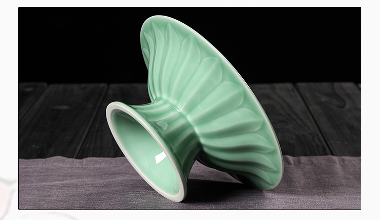 荷葉花器(小號哥窯梅子青冰裂)龍泉青瓷花瓶擺件客廳插花陶瓷水培容器綠蘿現代簡約家居創意裝飾