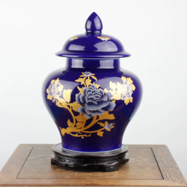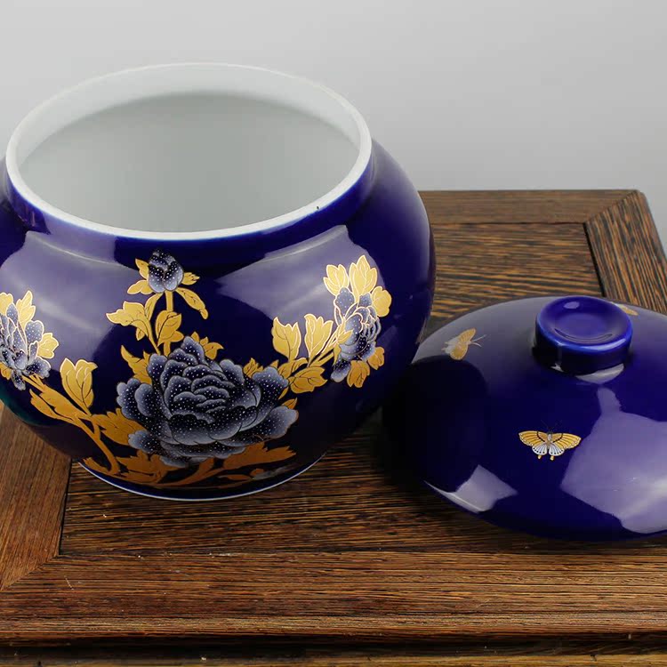 藍色景德鎮陶瓷器 腌菜缸密封罐儲物罐子蘋果壇子居家裝飾工藝品擺件