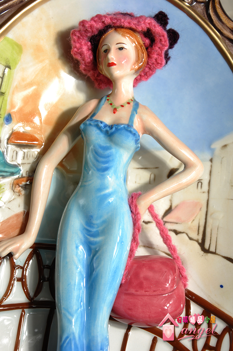 【規格】:26.7長*19.5寬*4.5厚CM【品名】:都會儷人橢圓壁飾掛盤-藍色裙