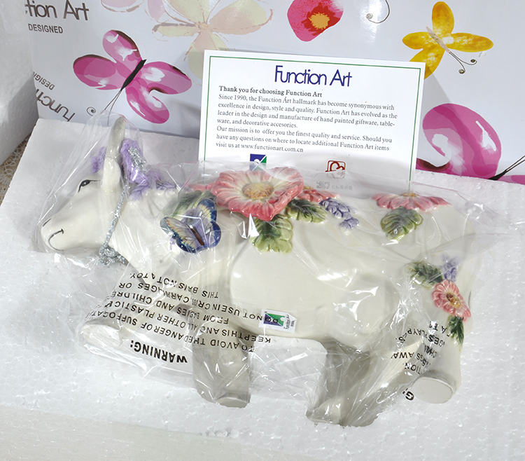 【介紹】:釉下彩繪陶瓷雕刻烤制而成。純手工釉下彩,浮雕加立體手工花,風格獨特,適用家居很溫馨的喲!底部有LOGO標,原品牌彩盒包裝,送禮很適合。
