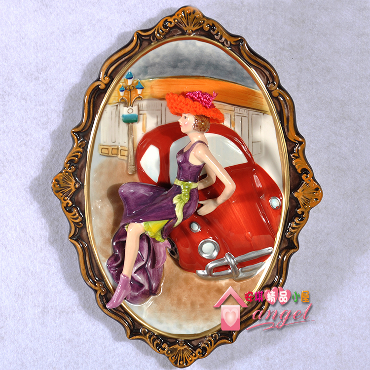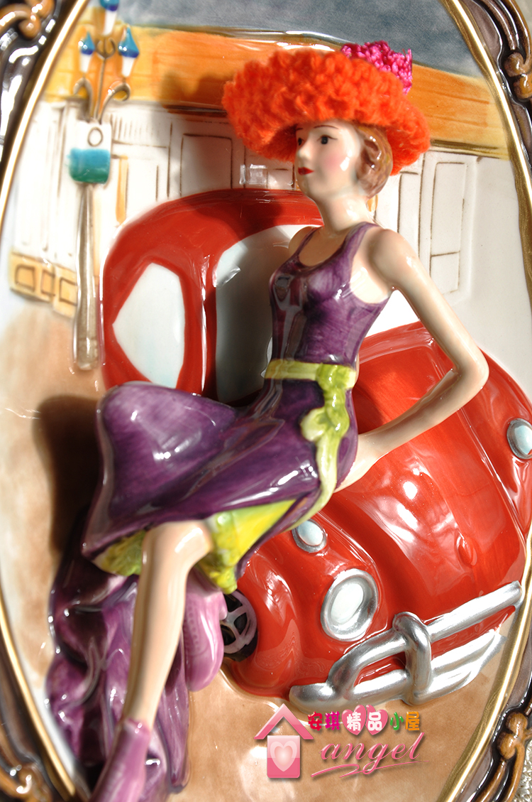 【規格】:26.7長*19.5寬*5厚CM【品名】:都會儷人橢圓壁飾掛盤-紫色裙